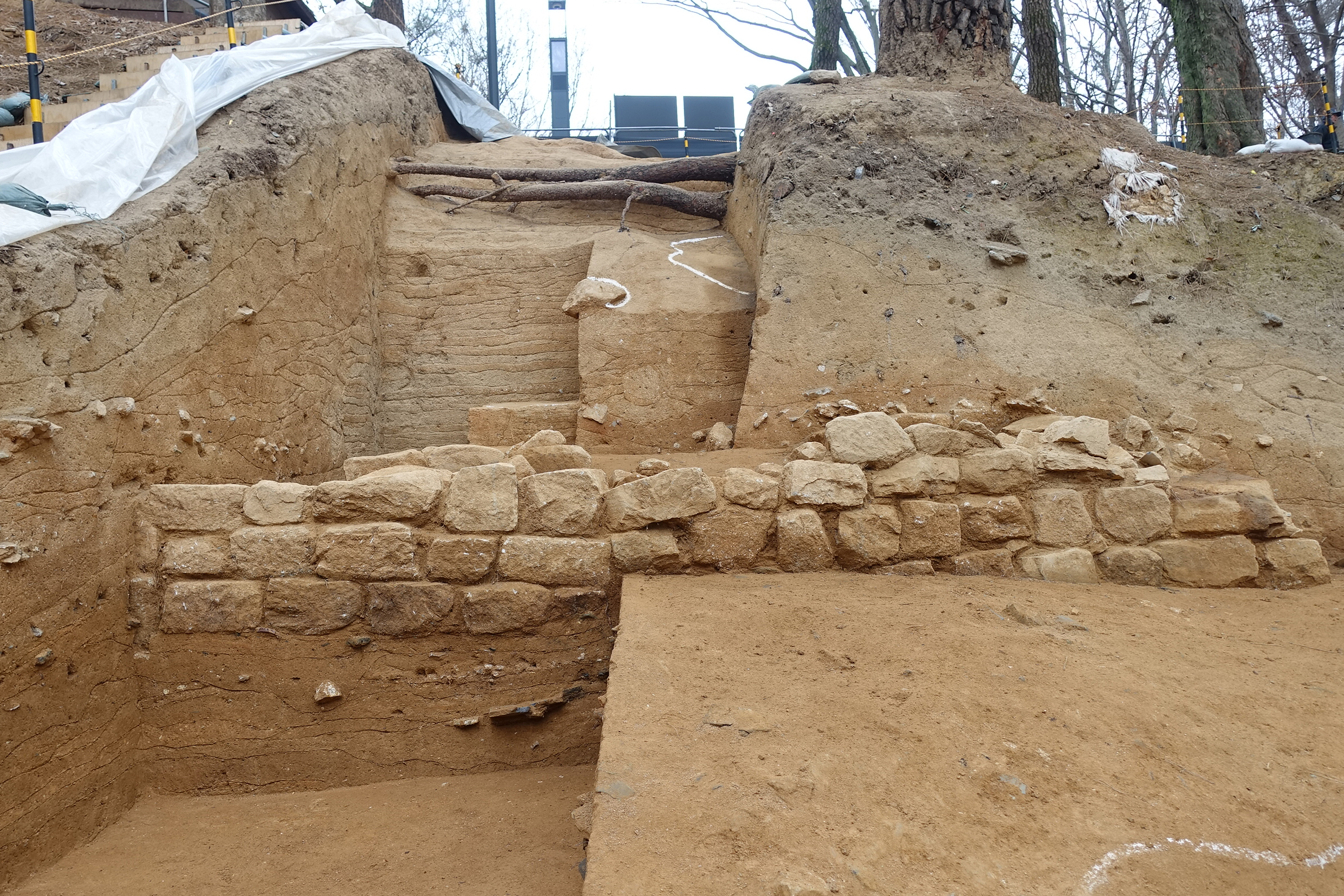A tile with the words '7th year of Hoichang' (會昌七年) incorporated during the construction of the wall was excavated, which tells the wall was estimated to be bullt in the mid-9th century.