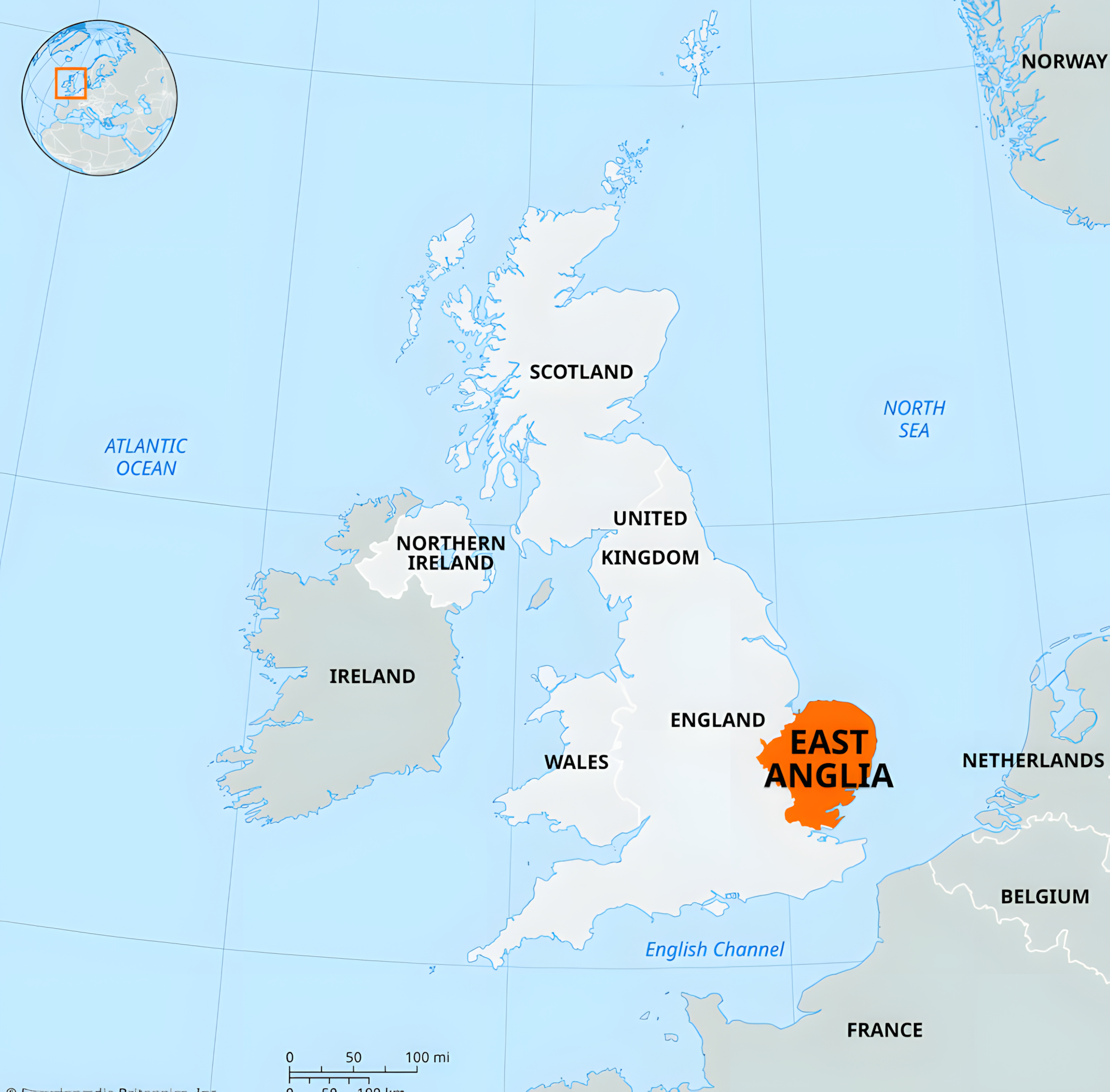 고고학도들이 영국 서퍽Suffolk 주 렌들샴Rendlesham에서 1,400년 된 이스트 앵글리아East Anglia 초기 왕들의 왕궁 홀 흔적을 찾았다고 최근 밝혔다.