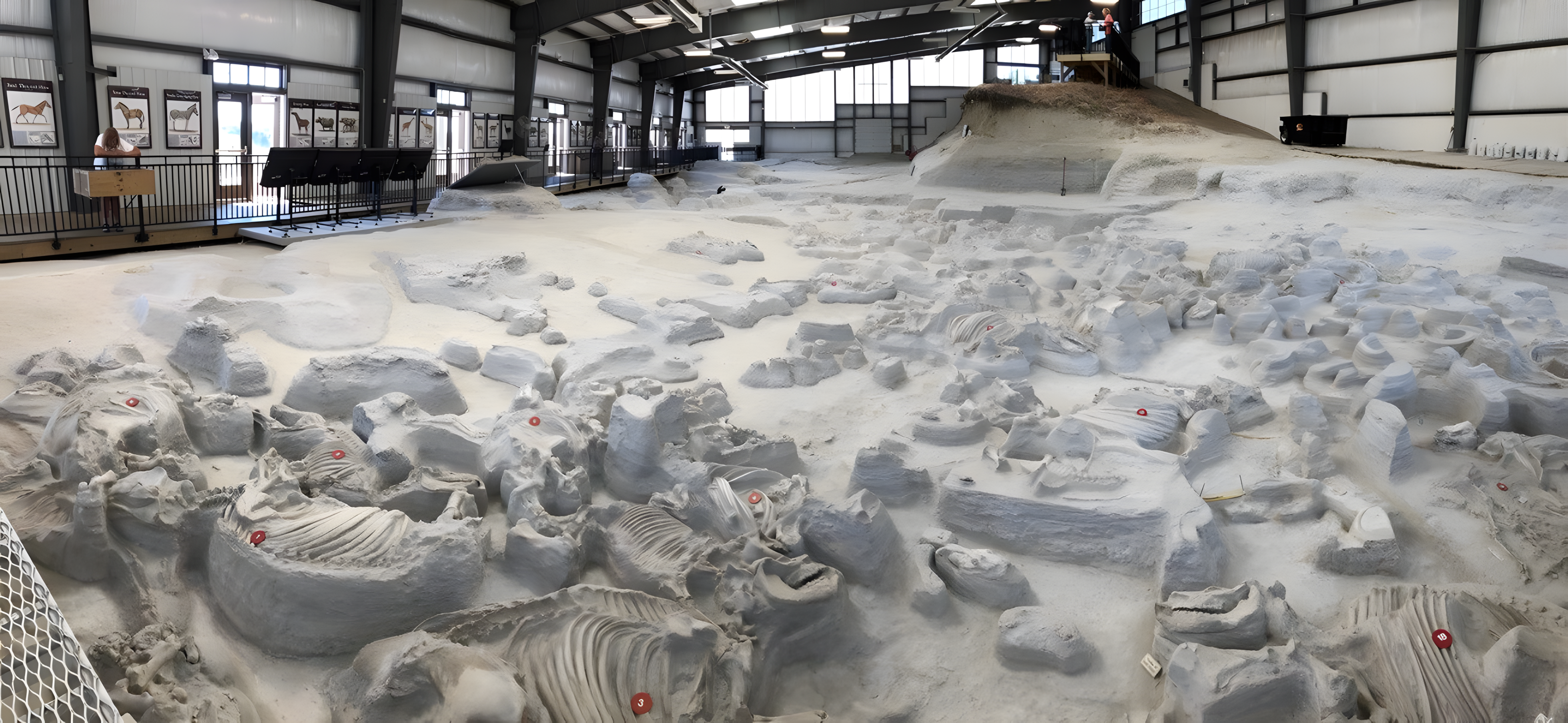네브래스카 유적에서는 고대 말, 기린 같은 낙타, 수많은 코뿔소 및 다양한 다른 동물이 유리 같은 재에 매장되었다.