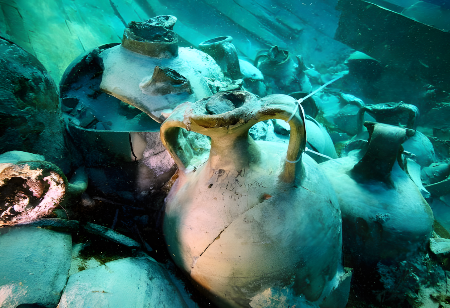 수십 점 암포라amphorae는 봉인된 채로 남아 있었고, 선체와 갑판 목재 일부는 원래 구조를 그대로 유지했다.
