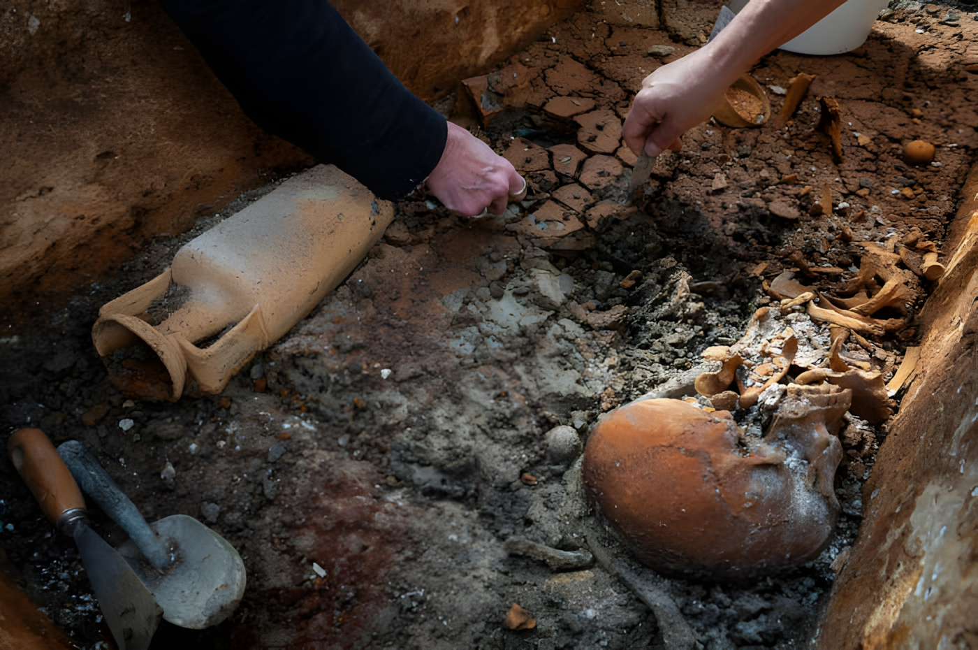 유골 주변에는 고인의 지위와 사랑하는 이들의 헌신을 보여주는 다양한 부장품이 있었다.