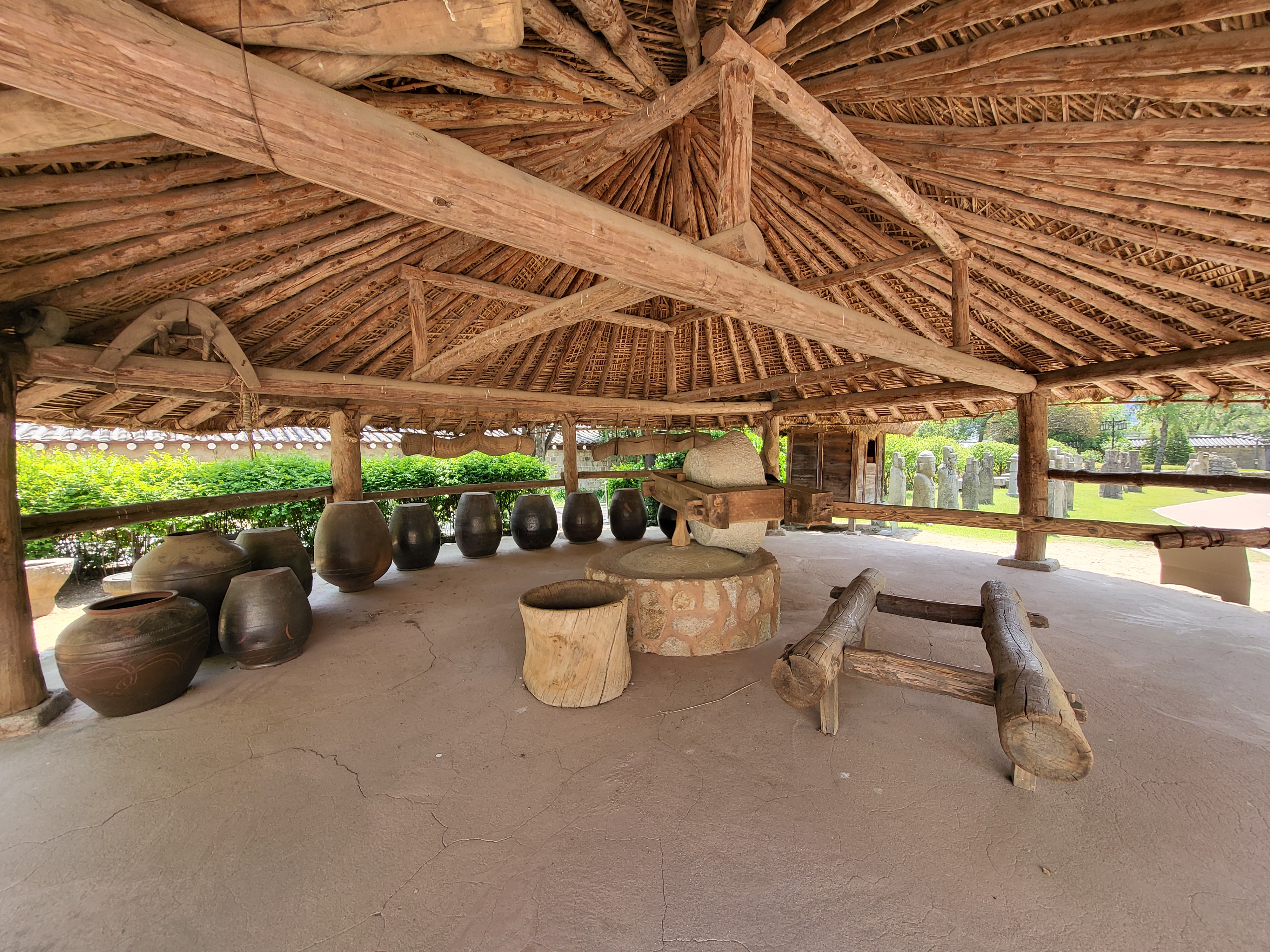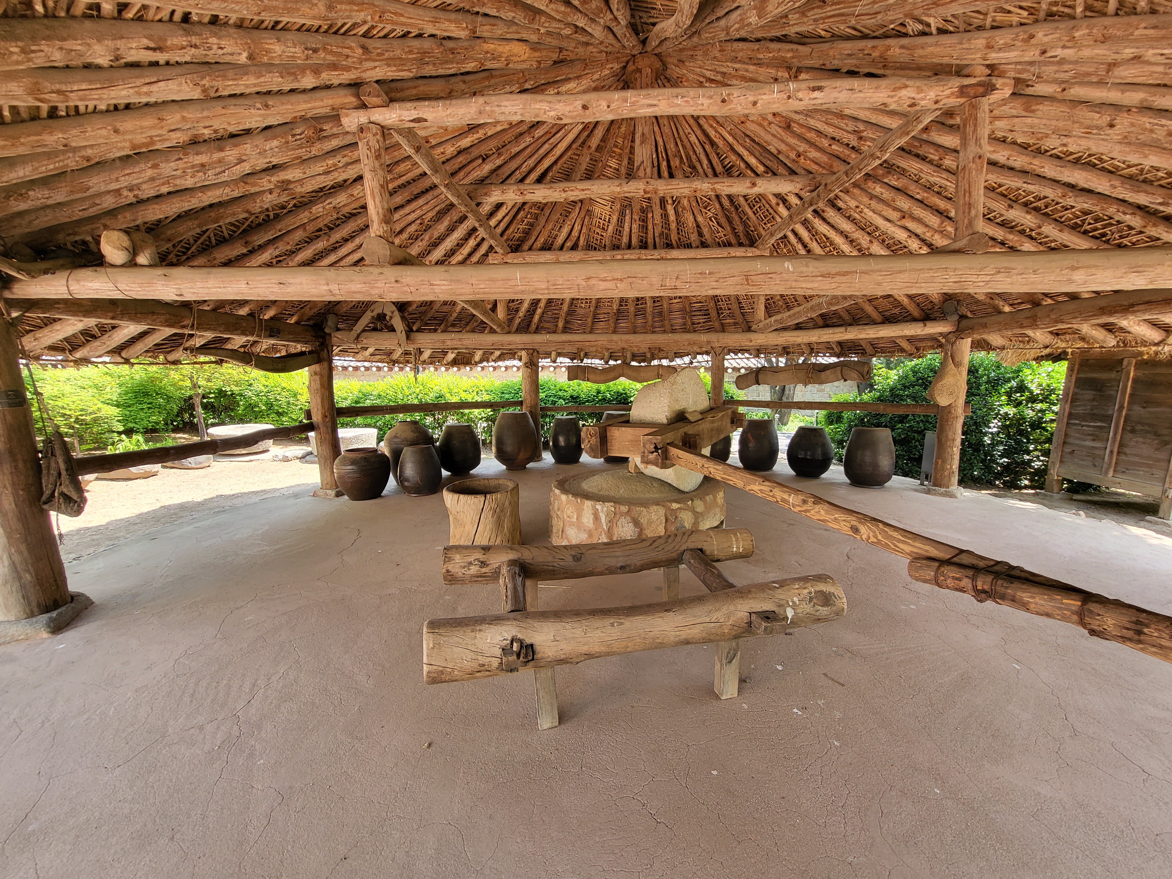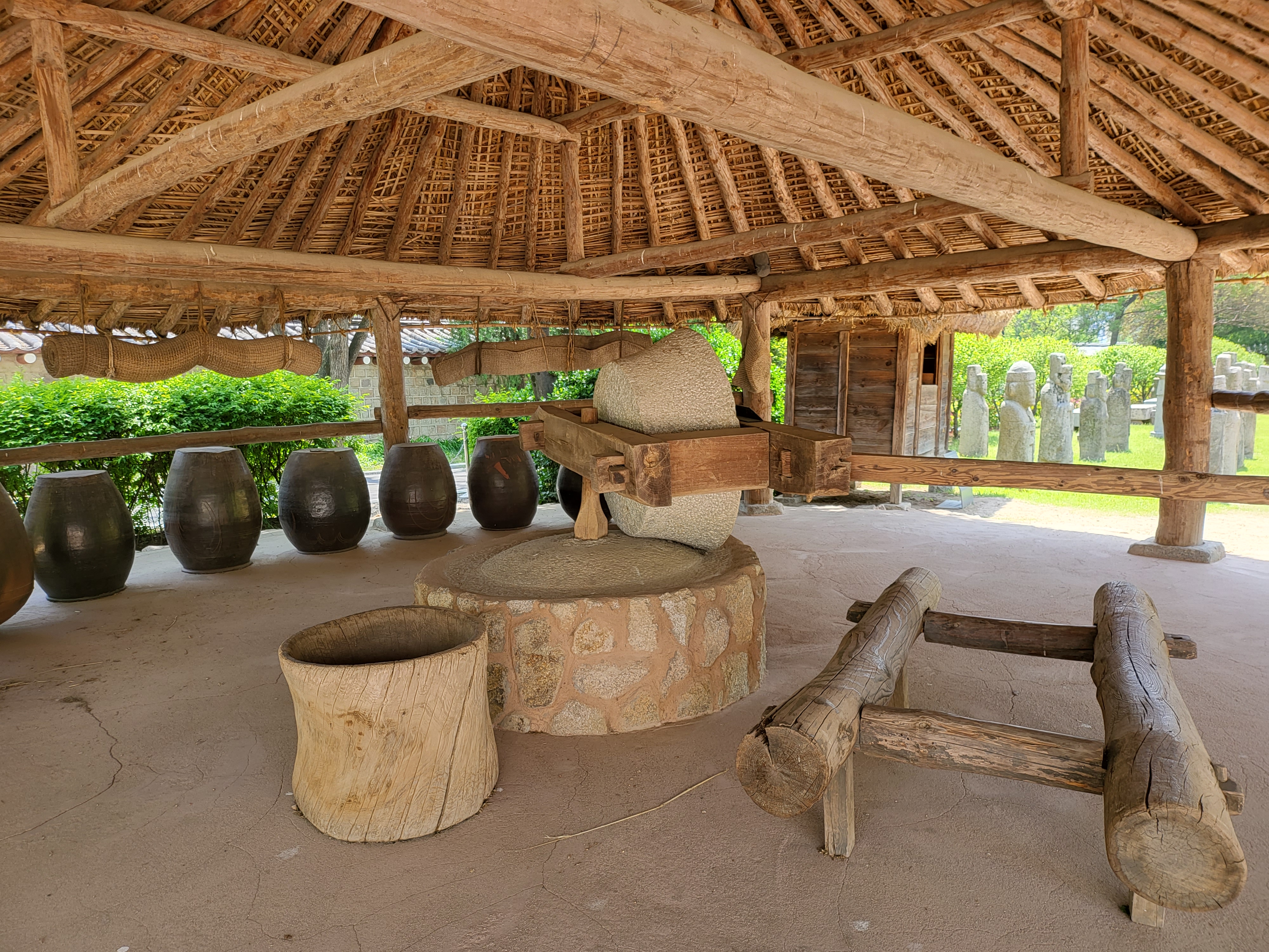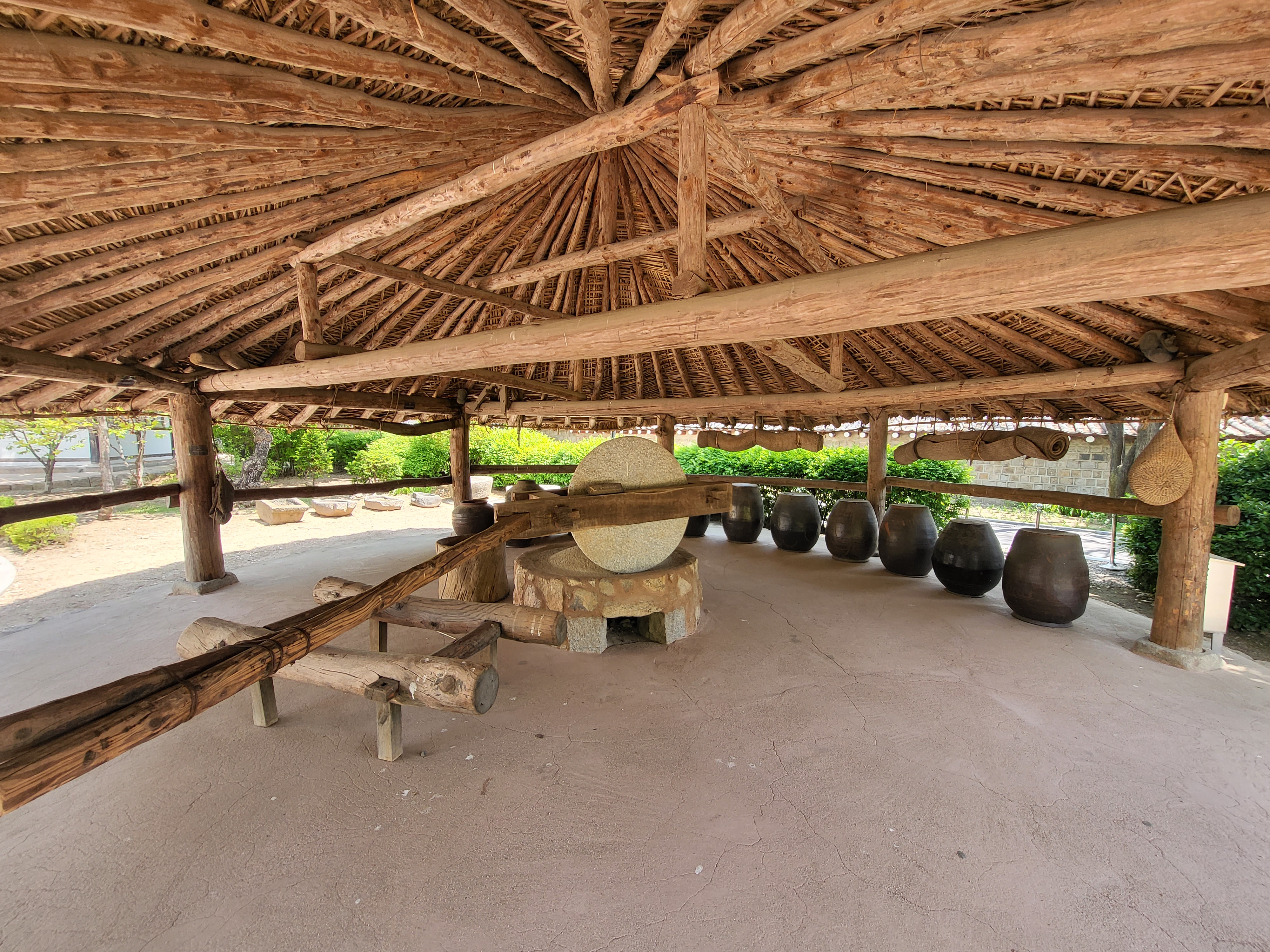 Rotary grinding mills were driven by an ox or horse and used to millgrain.