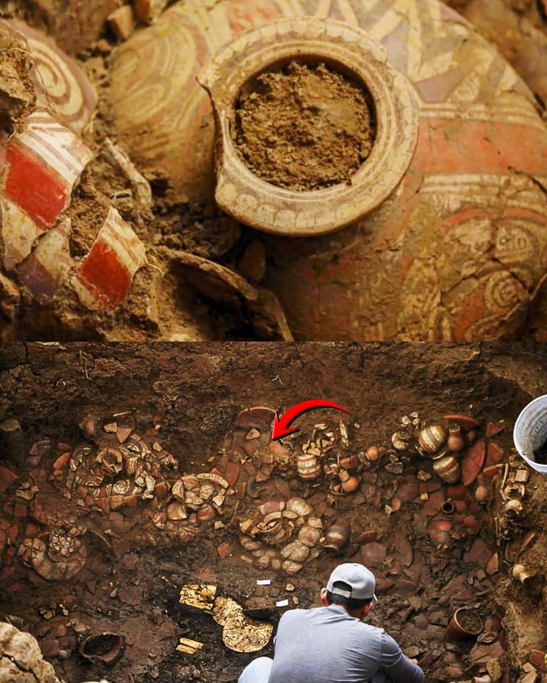 엎드린 자세로 매장된 중앙 유골 주변에는 높은 사회적 지위를 나타내는 귀중한 유물들이 놓여 있었다.