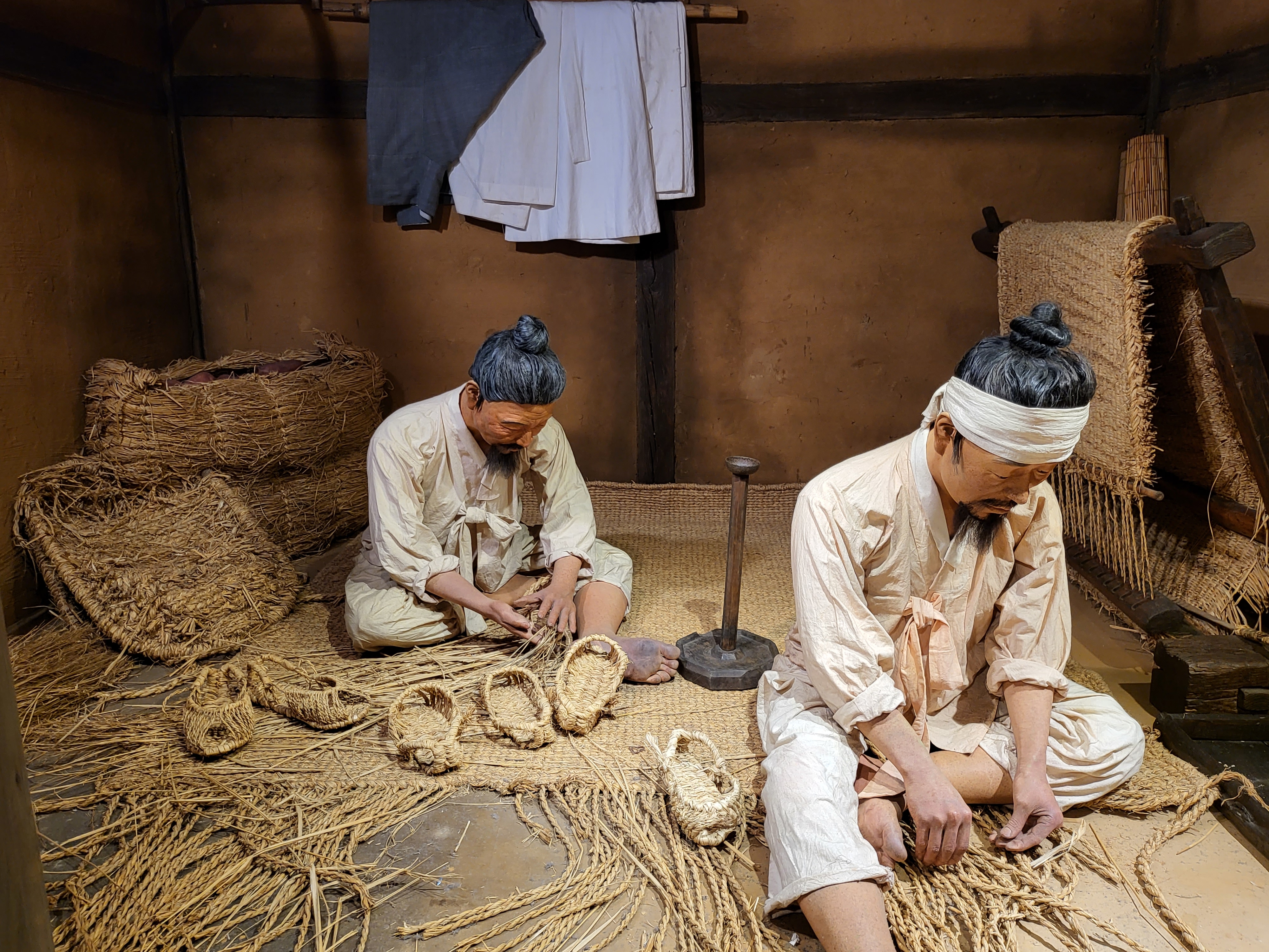 The sarangchae was a space for breeding animal stock, storing crops, and keeping farm implements in the winter, farmers would use the room as a workplace, making straw ropes and bags and weaving and plaiting weaving mats.