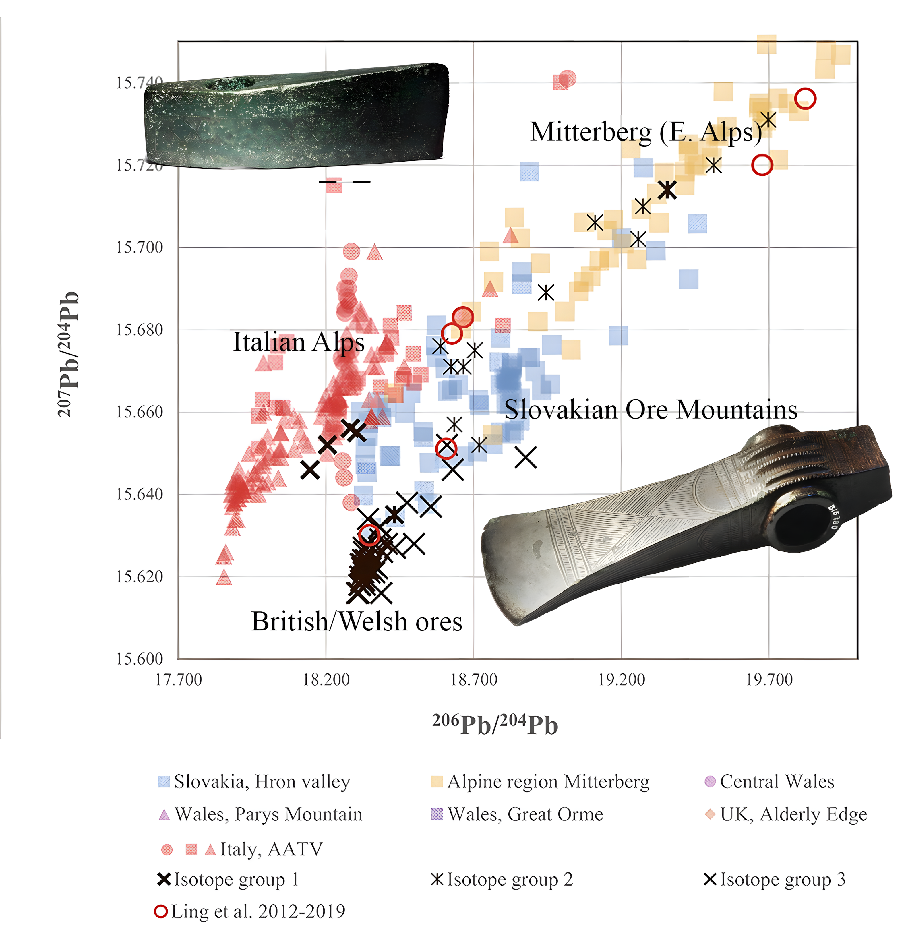 모에스가르드 박물관Moesgaard Museum 소속 H. 노르가르드Nørgaard와 그녀의 동료인 오르후스 대학교Aarhus University 소속 H. 반드킬데Vandkilde, 만하임 소재 쿠르트-엥겔호른 센터Curt-Engelhorn Centre 소속 E. 페르니카Pernicka는 고대 청동 유물의 화학 및 동위원소 데이터 중 가장 방대한 자료를 바탕으로 연구를 진행했다.