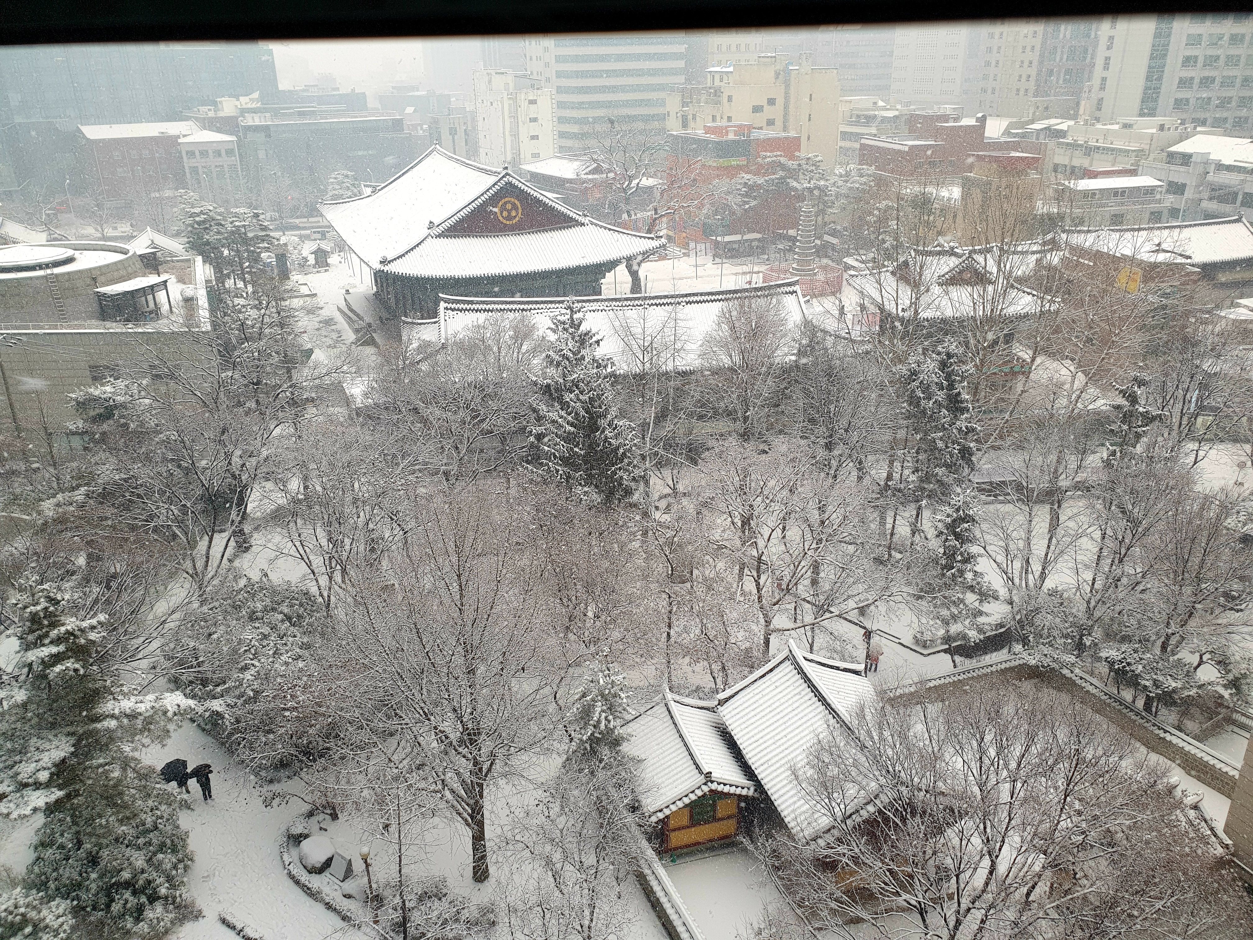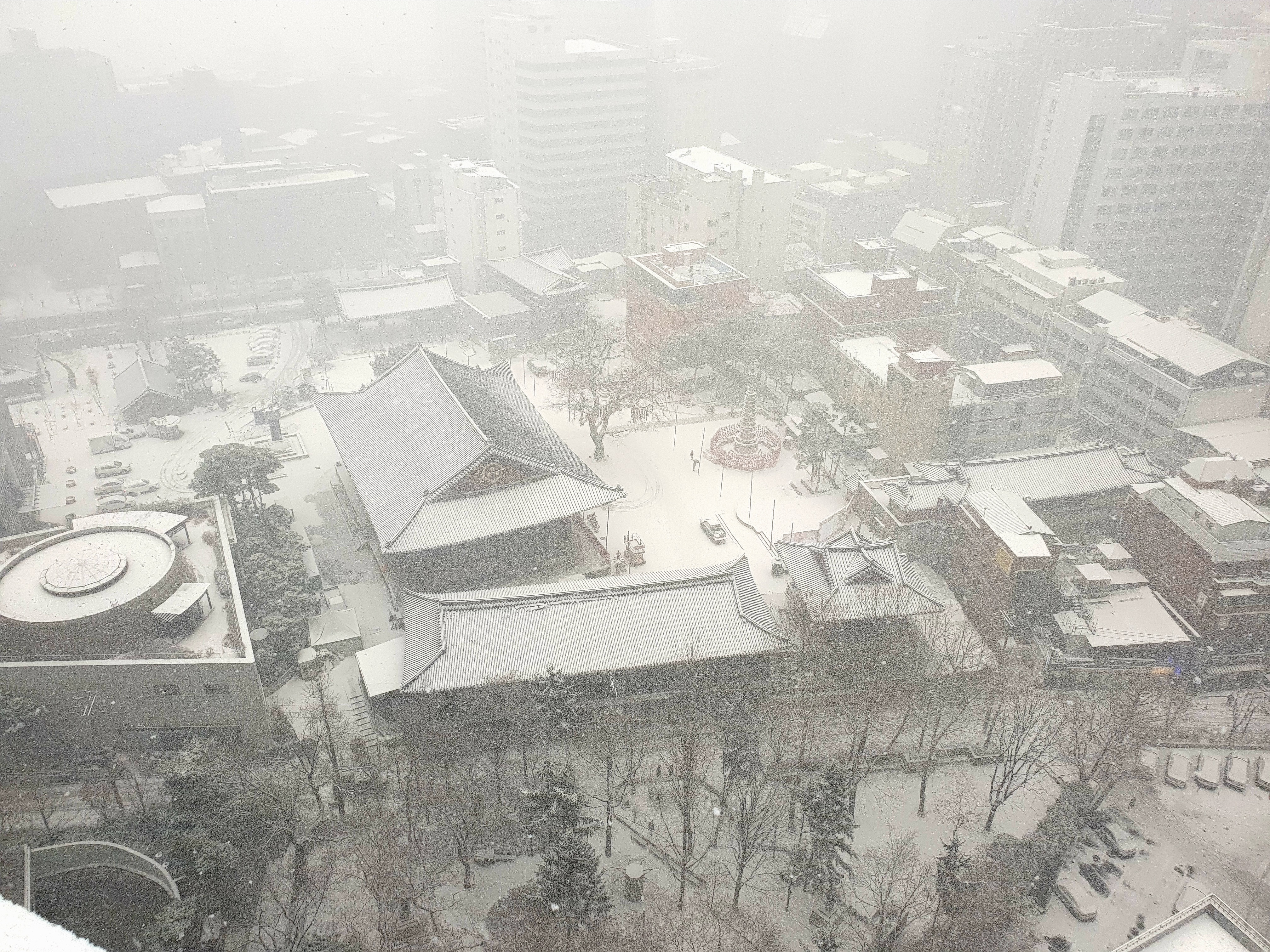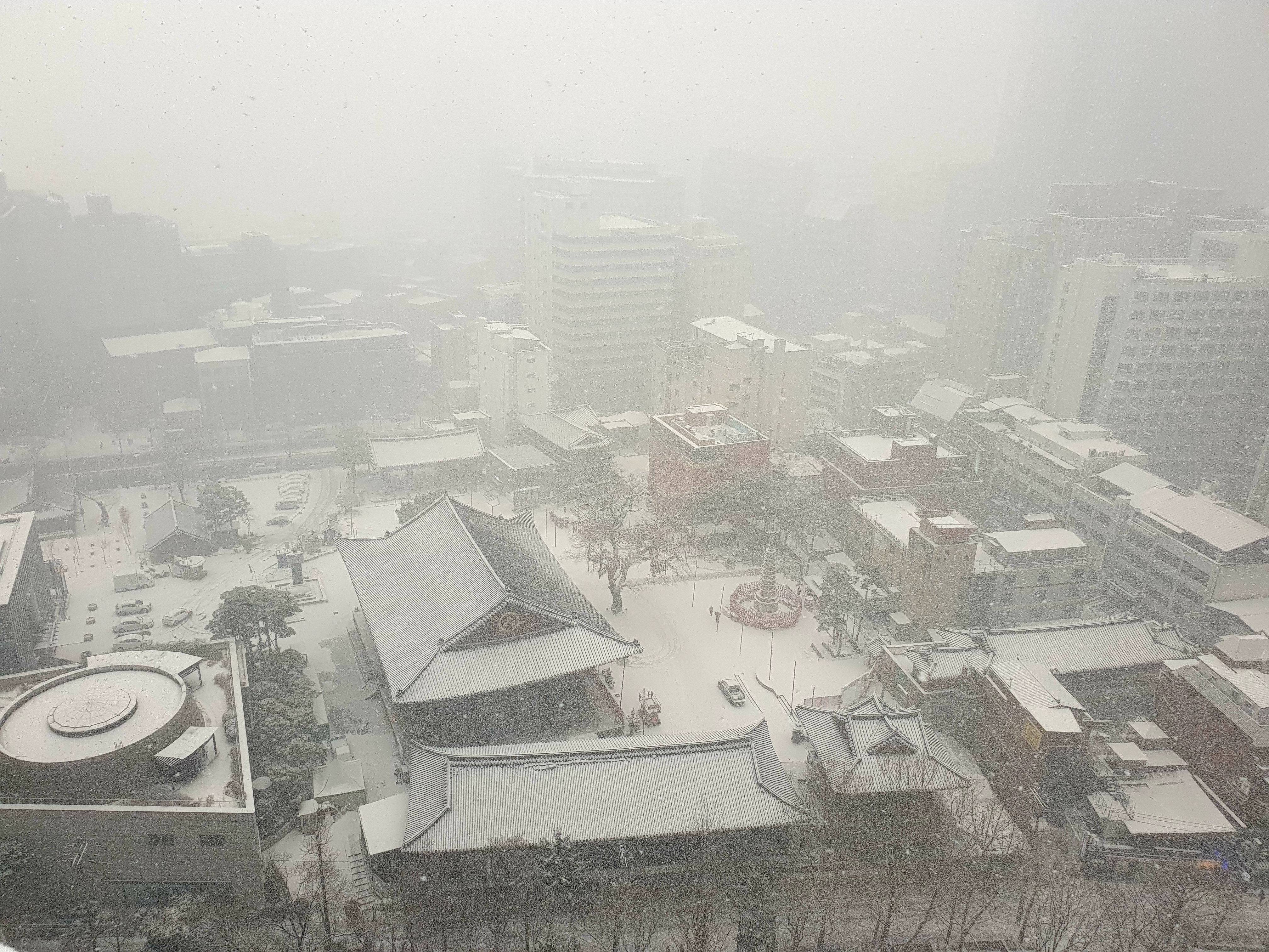 Yesterday afternoon, heavy snow fell in Seoul.