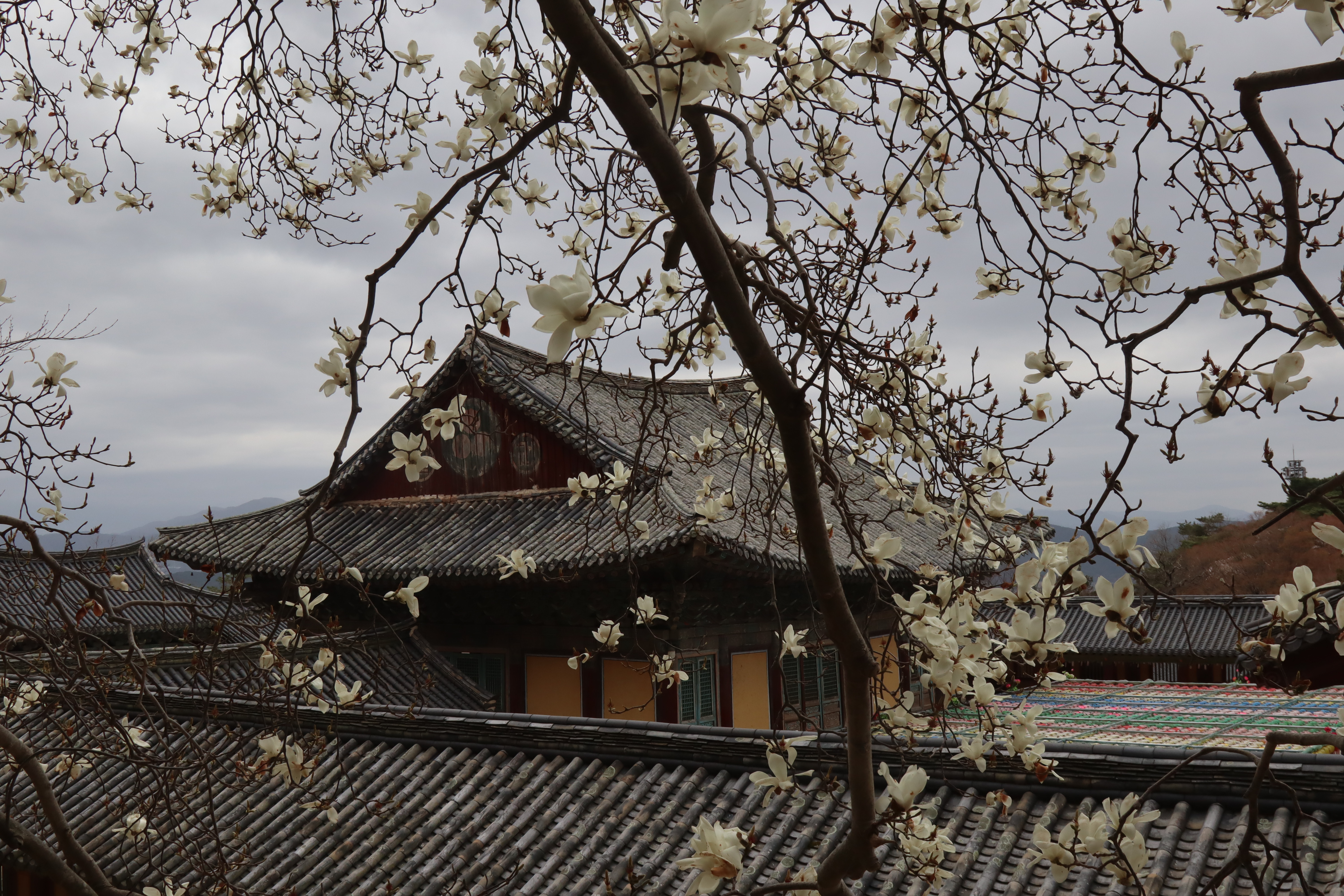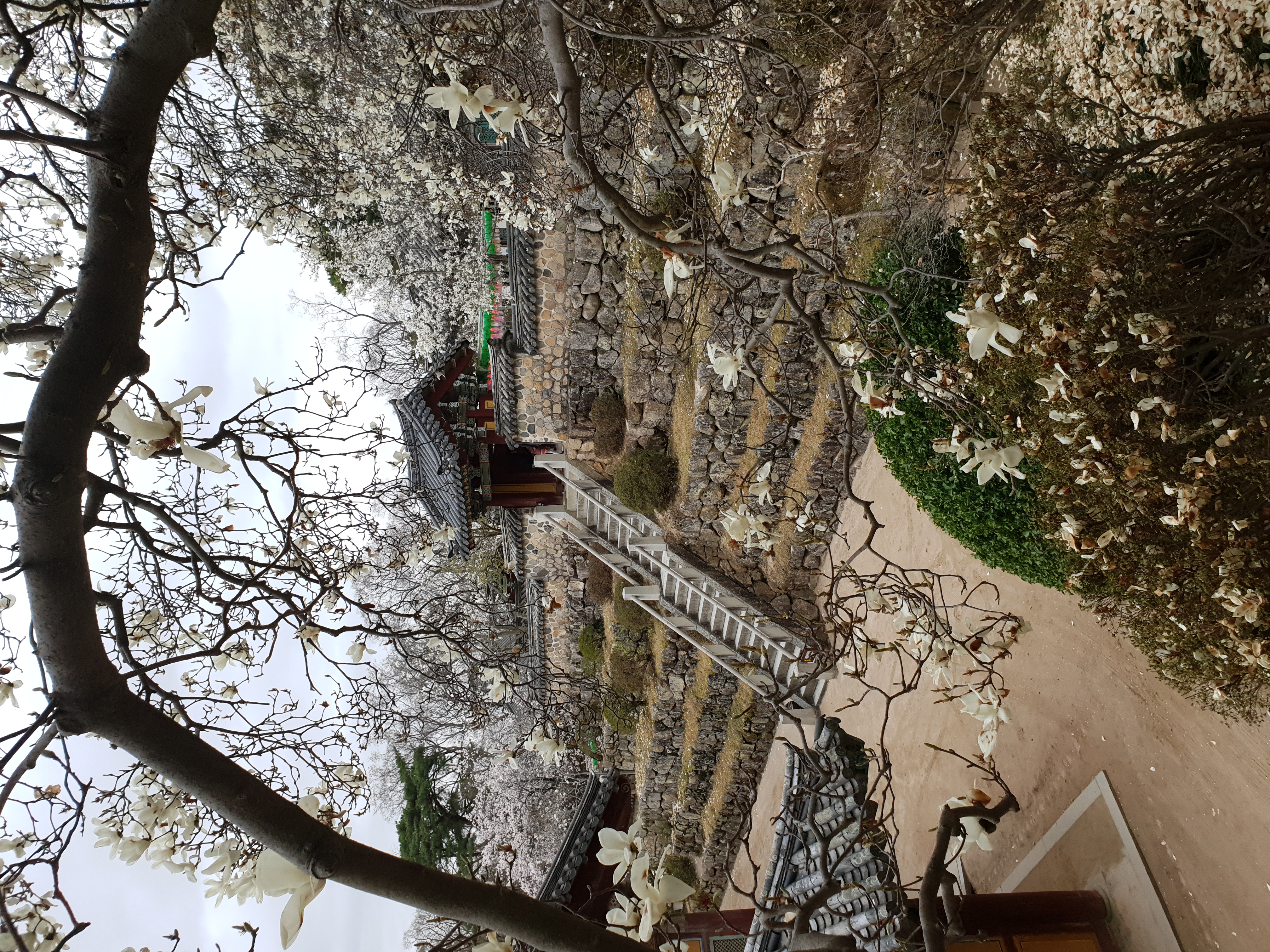 호총 같은 목련 이불 틈바구니로 다보 석가 두 탑 오토가니 목을 내미는데