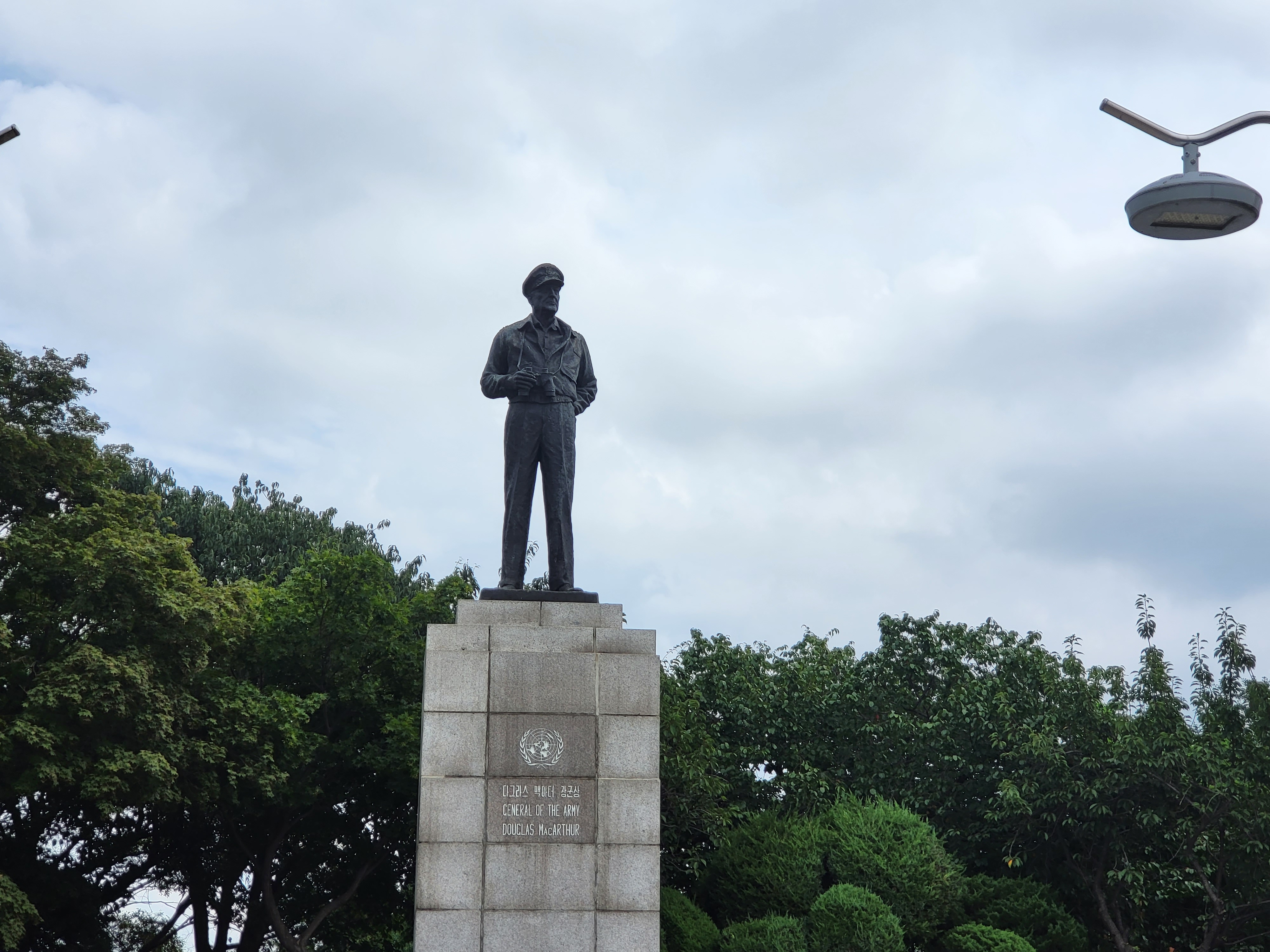 And thus it is by the authority and the contributions of a grateful people that the General Douglas MacArthur Statue Committee consisting of representatives from all walks of life, has raised this figure fashioned in General MacArthur's heroic mold by Professor Kyung Seung Kim to overlook this hallowed scene for all ages to come.