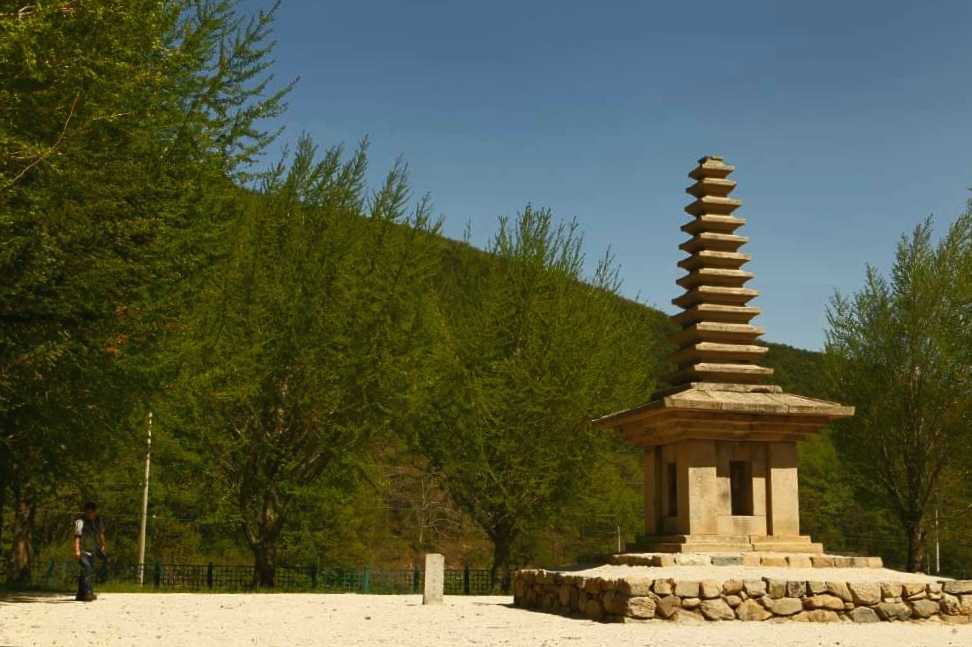 It has a thirteen-story stupa on top of a foundation built of dirt, which is an unique type that no similar case can be found in other Silla stupas.