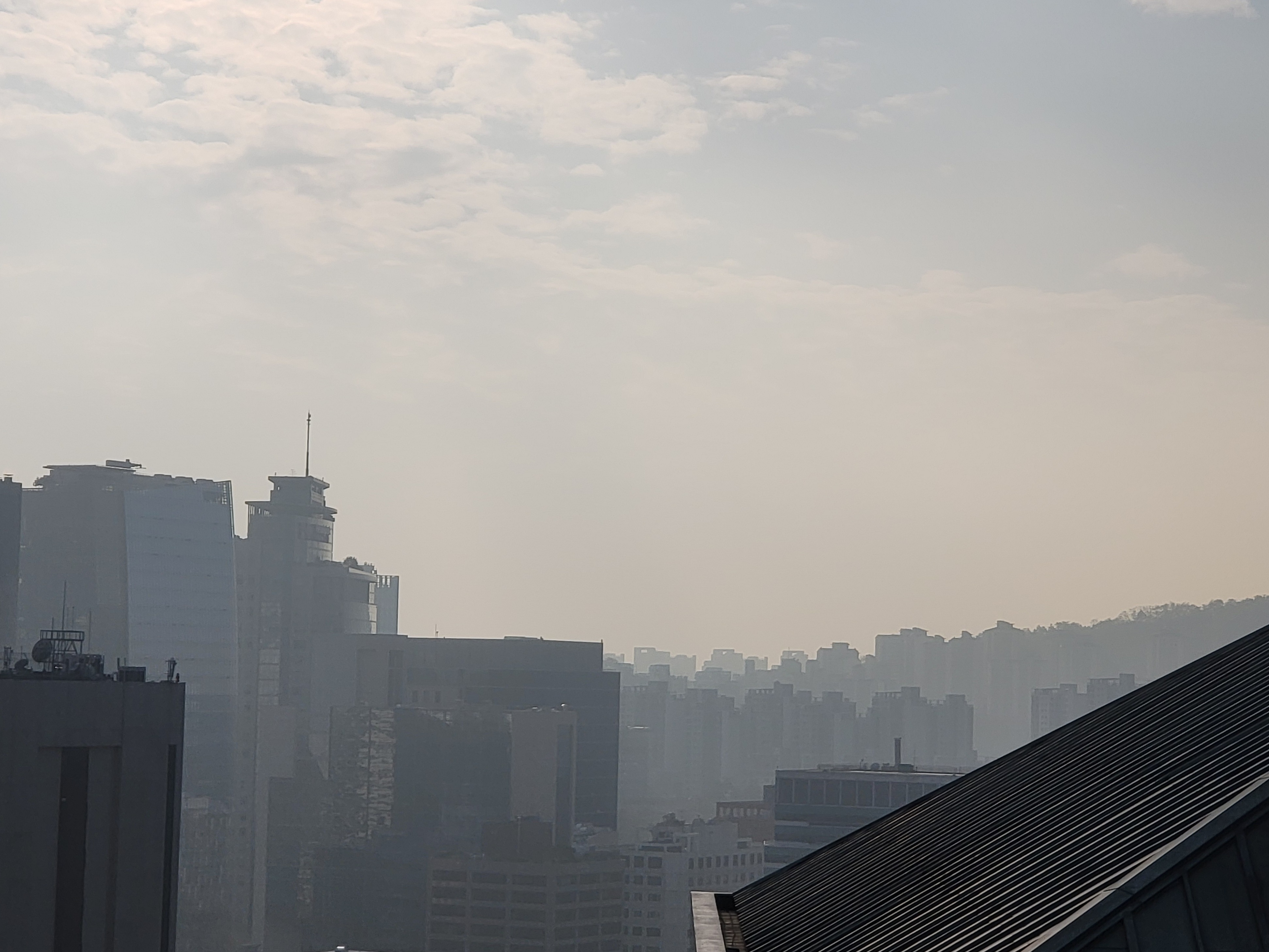 뜸하던 미세먼지인지 희끄무레한 하늘이 요 며칠 거푸 출현한다.