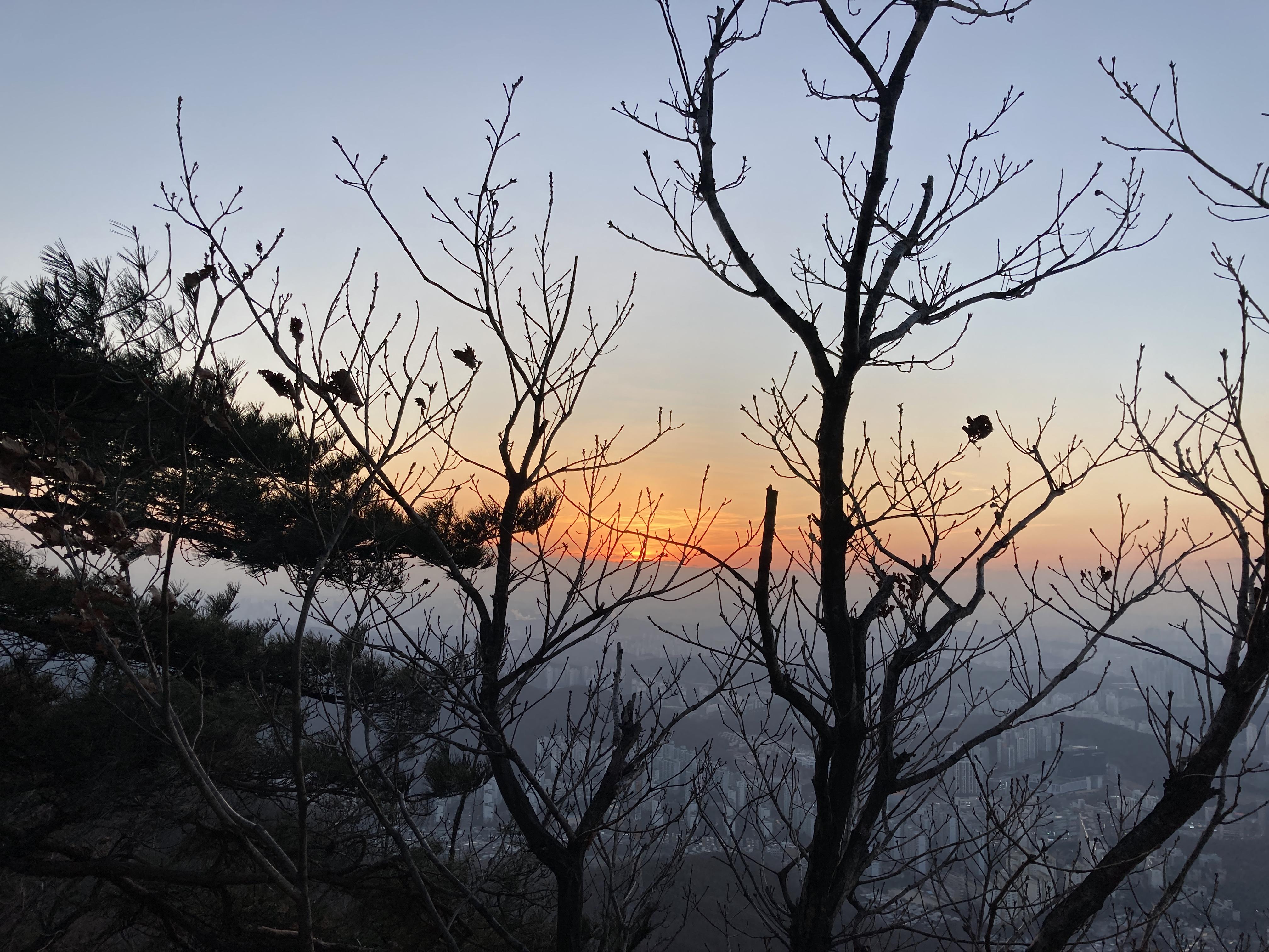 구름이 없었다면 더 오랫동안 해지는 모습을 바라봤을테지만, 구름 사이로 져무는 겨울 해는 차갑고 쓸쓸하기만 하다.