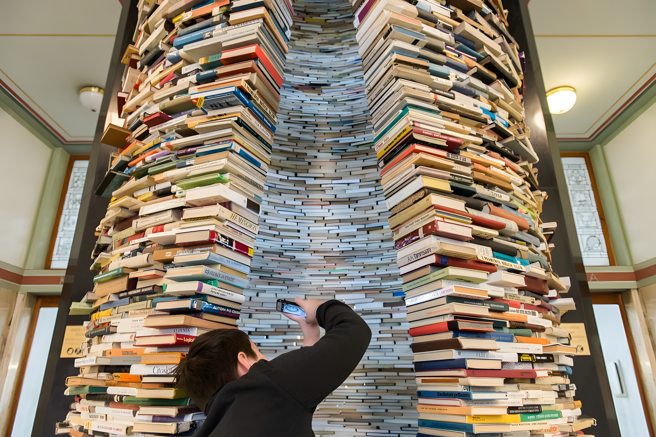 슬로바키아 출신 작가 마테이 크렌Matej Krén이 만든 이디엄은 약 8,000권 책이 탑처럼 쌓인 형태다.