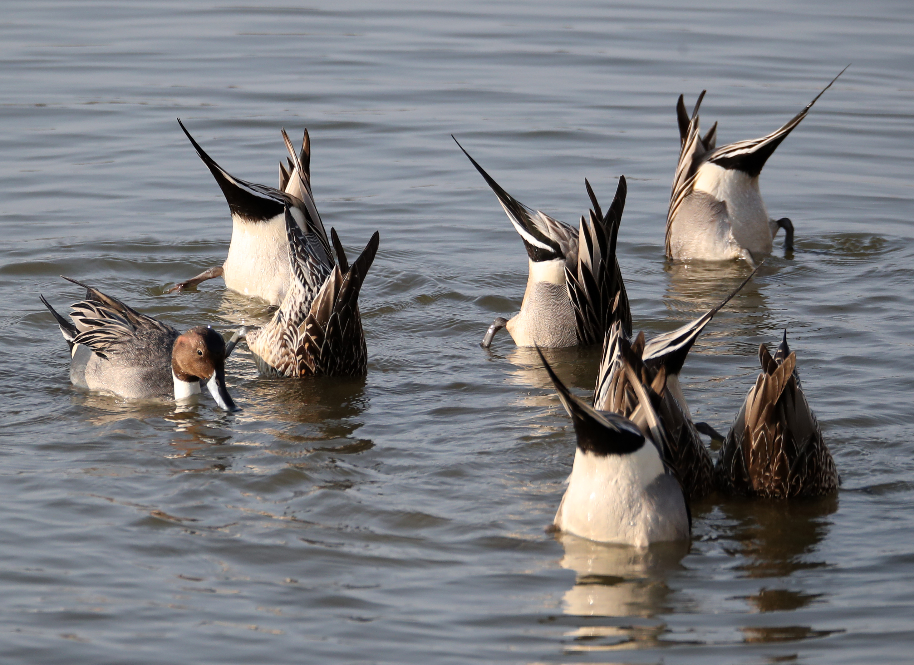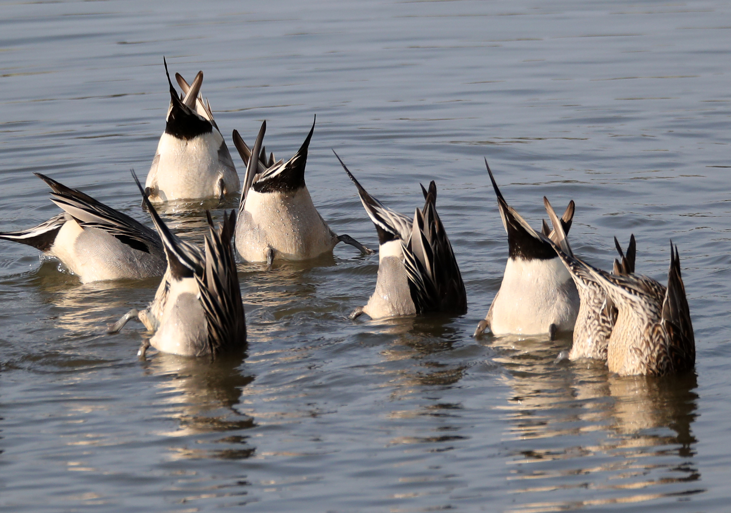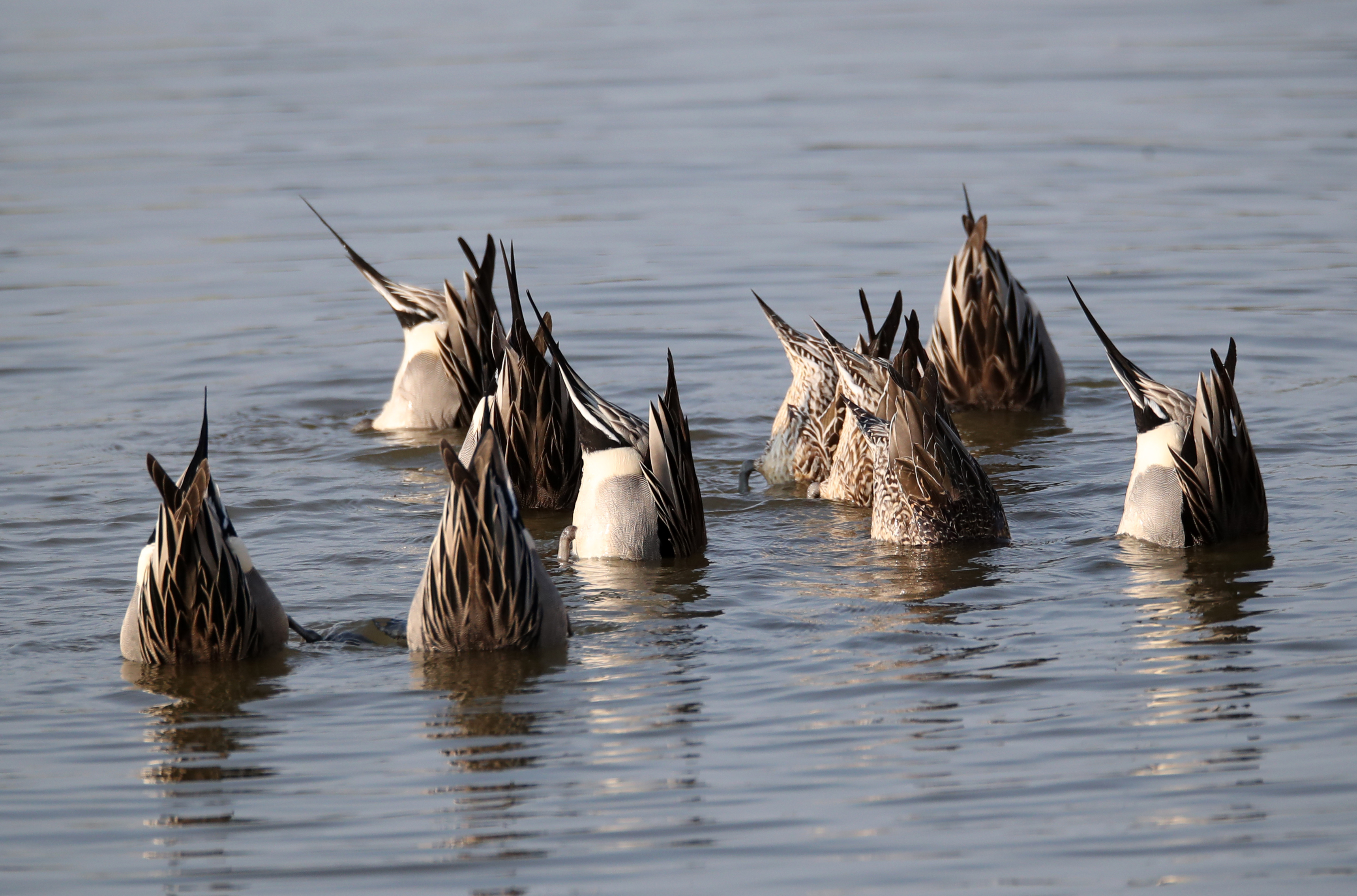 Northern pintails are diving in search of prey at Gyeongpo Lake in Gangneung-si, Gangwon-do. Photos by Yoo Hyung-jae [Yoo Hyung-jae, who took these pictures, is a photo reporter at Yonhap News Agency ...