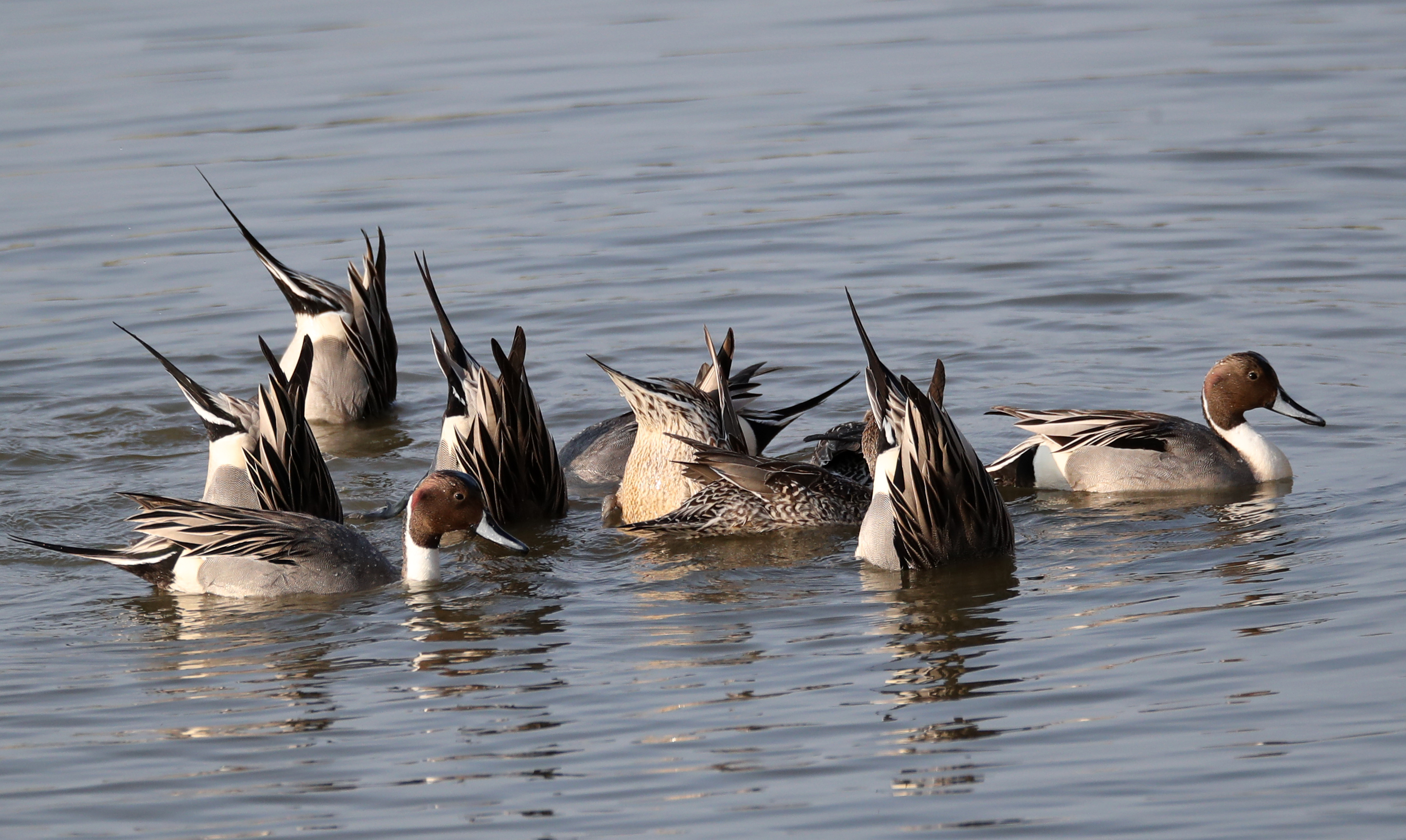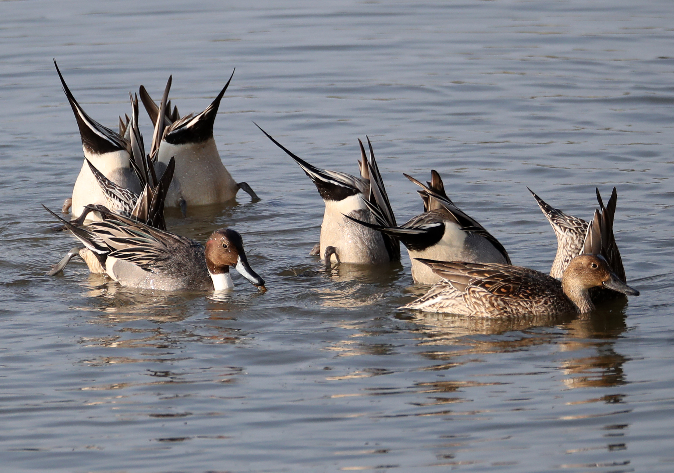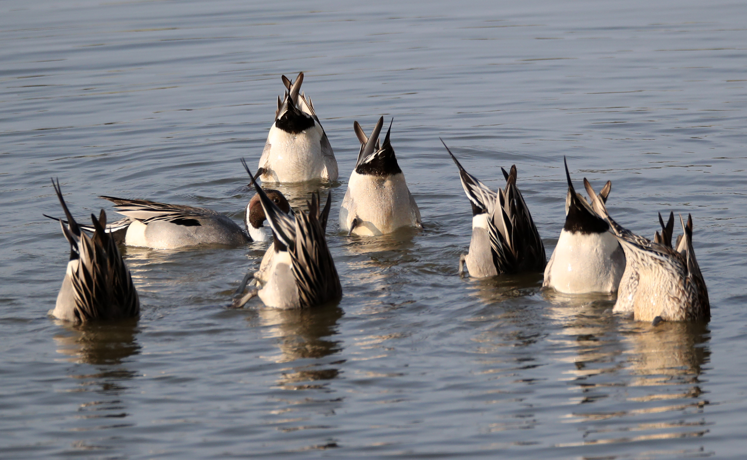 Northern pintails are diving in search of prey at Gyeongpo Lake in Gangneung-si, Gangwon-do. Photos by Yoo Hyung-jae [Yoo Hyung-jae, who took these pictures, is a photo reporter at Yonhap News Agency ...