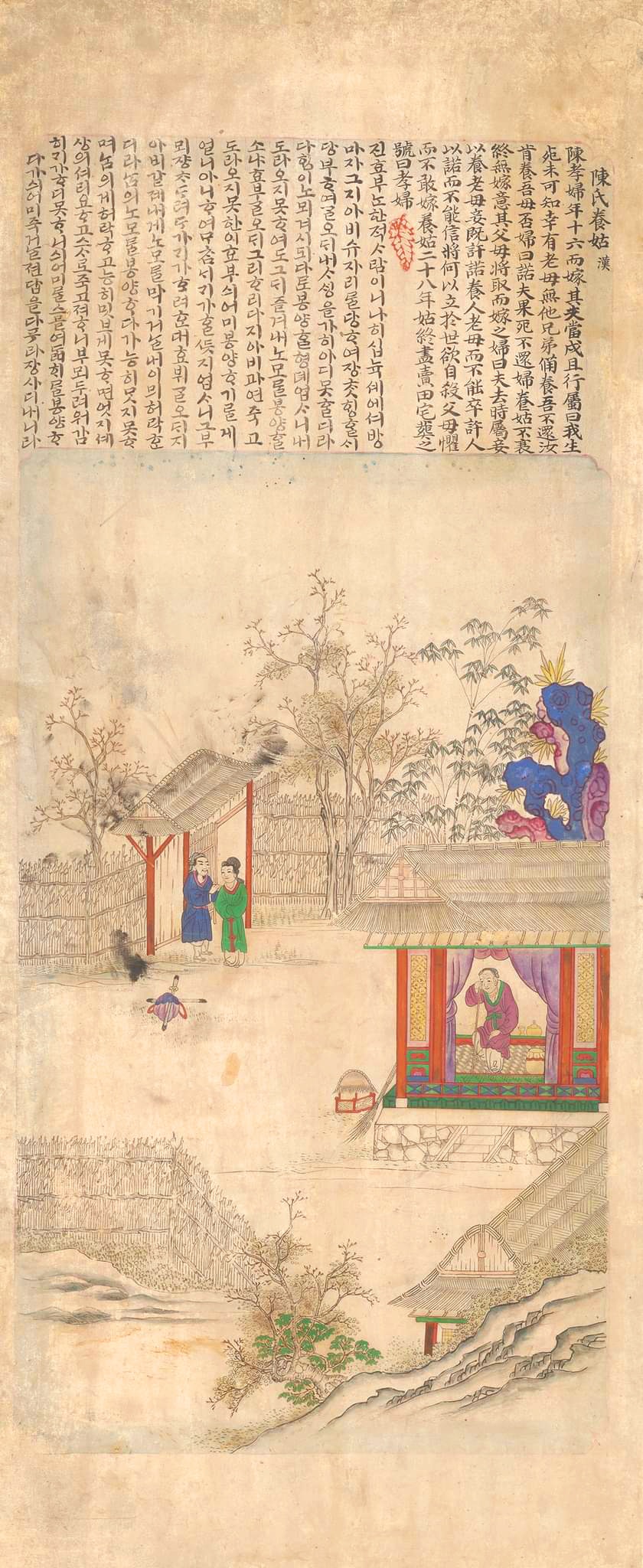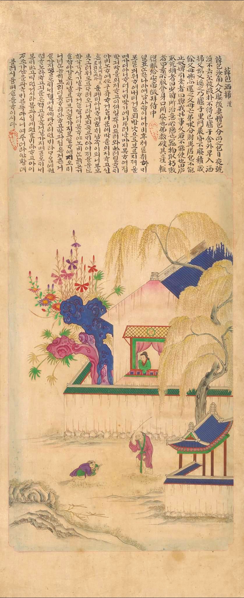 Though the painting is regarded as the work of an amateur, it is all the more valuable in that it was written in Korean alphabet, Hangeul.
