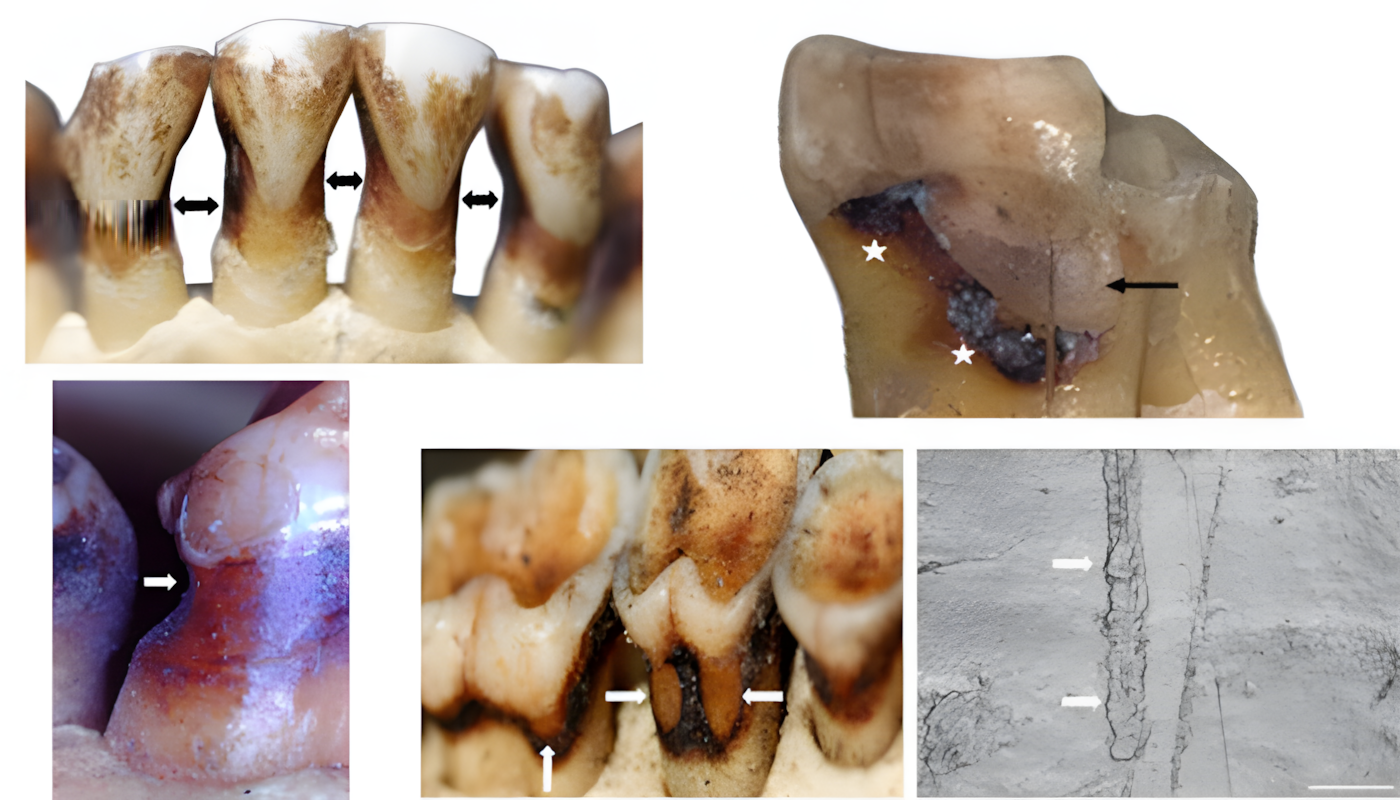 아주 작은 흔적조차도 중요한 의미를 지닐 수 있다. 특히 치아 사이에 노출된 치근tooth roots을 가로지르는 얇은 홈groove은 반복적으로 나타나는 특징 중 하나다.