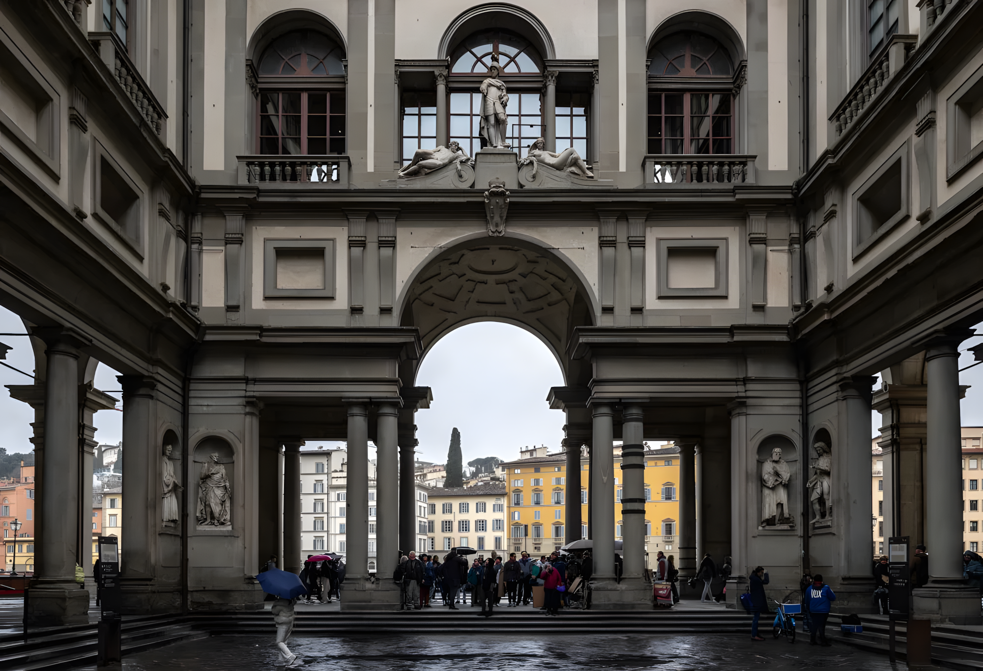 아트 뉴스페이퍼(Art Newspaper)에 따르면, 이번 시위는 우피치 광장Piazzale degli Uffizi에서 열렸으며, 지난해 가을 미술관의 서비스 제공업체가 변경되면서 경비, 안내, 매표, 서점, 물품보관소 등에서 임시직으로 일하던 일부 노동자가 해고된 데 대한 항의로 시작되었다.