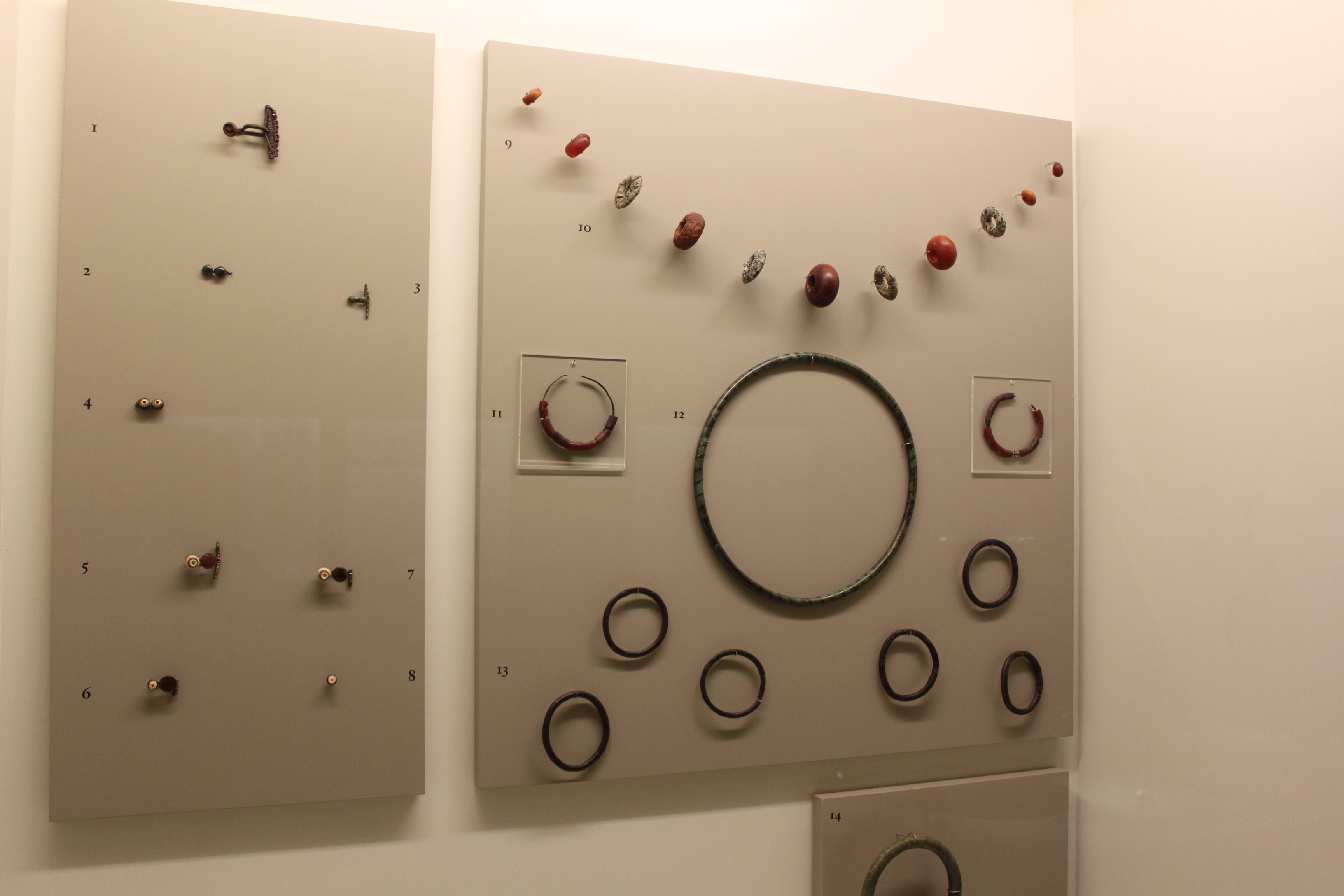 장신구로는 호박amber이나 산호coral로 장식된 피불라fibula, 귀걸이, 구슬, 슬레이트 팔찌, 반지 등이 있다.
