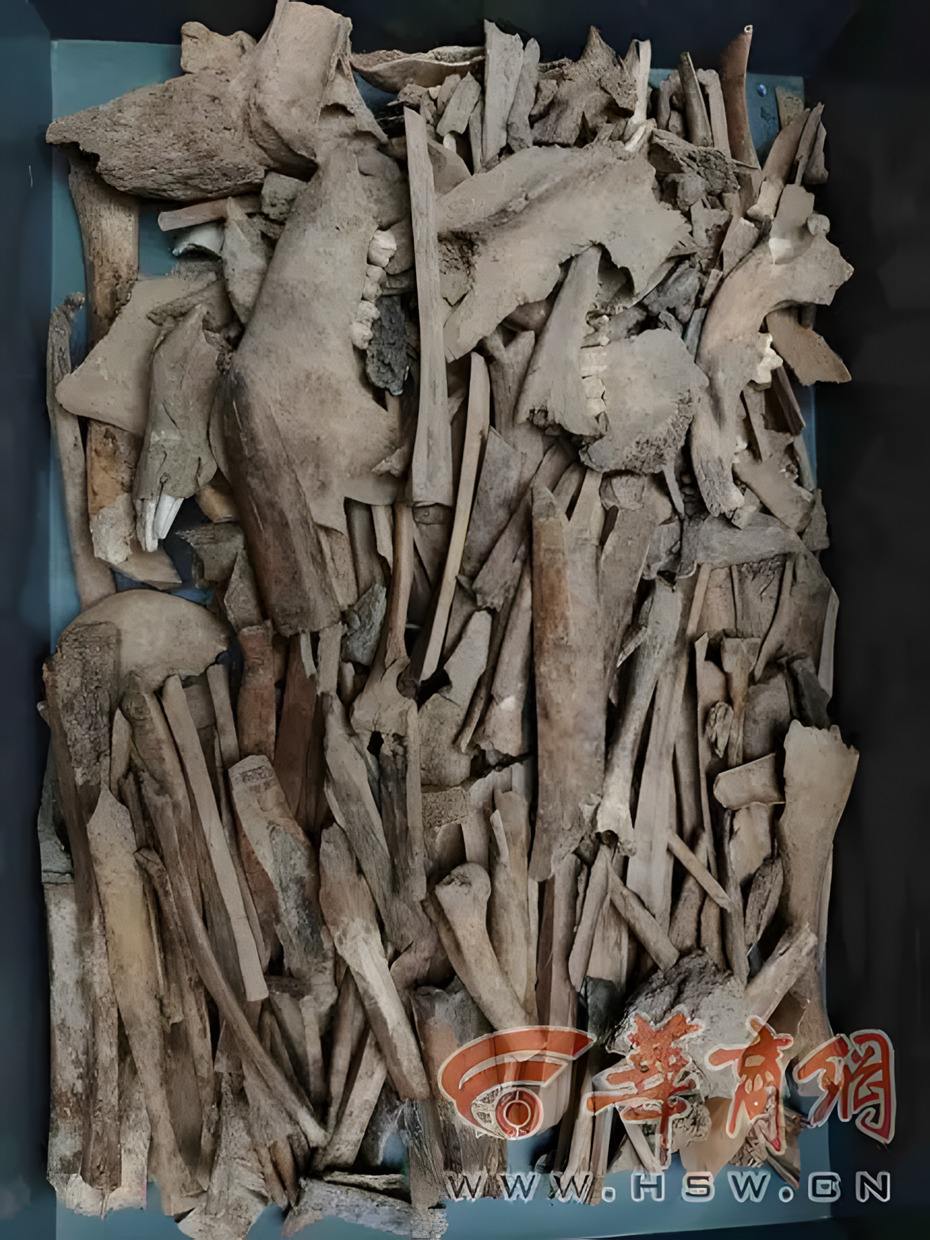 철제 칼과 숫돌 같은 도구뿐 아니라 78kg에 달하는 뼈와 조개껍질 재료가 출토되었다.