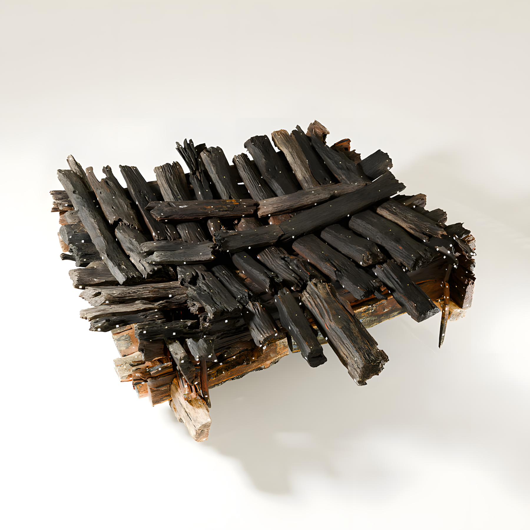 이에는 나무 조각, 금속 파편, 직물, 동물의 털, 그리고 도굴꾼들이 귀중한 금속을 가져간 후 구덩이에 던져 넣었을 것으로 추정되는 기타 유기물들이 포함되어 있었다.
