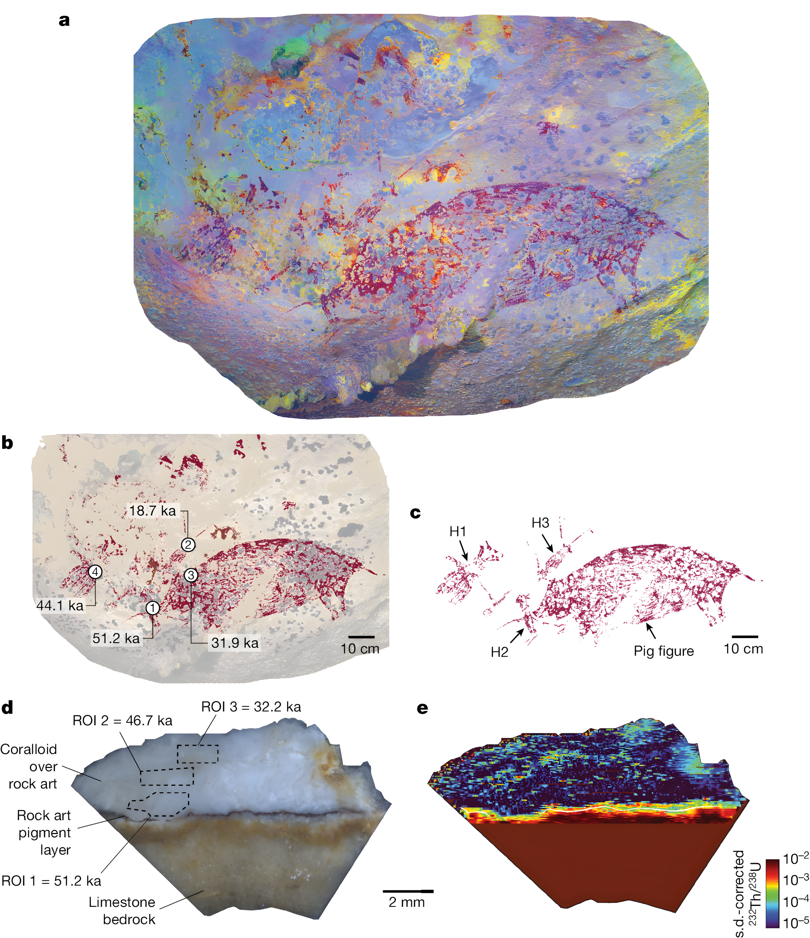 이후 연구팀은 2017년 인도네시아 술라웨시Sulawesi 섬 한 동굴에서 발견되었지만 연대가 알려지지 않은 그림에도 레이저 연대 측정법을 적용했다.