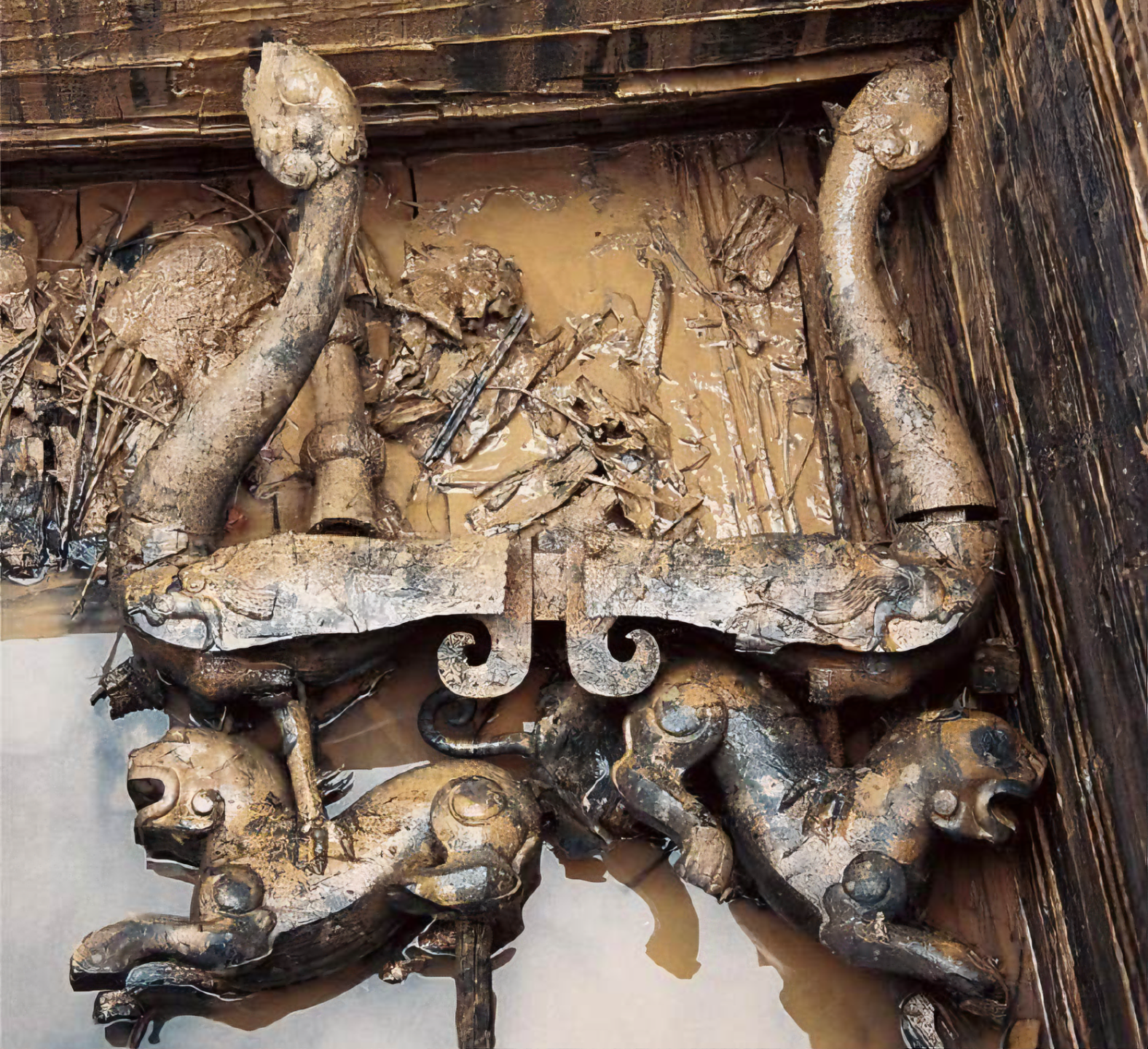 이는 현재까지 초나라 무덤에서 발굴된 가장 큰 현고를 지탱하는 호좌봉가라, 높이 약 1미터에 이른다.