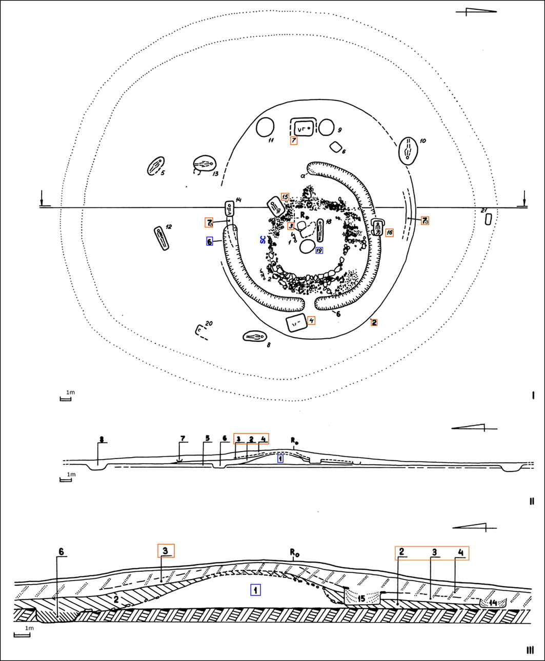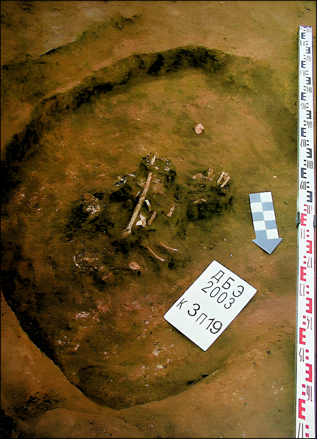 봉분 중심부에서, 해체된 인골이 담긴 매장 구덩이(19번 매장)가 발굴되었다.