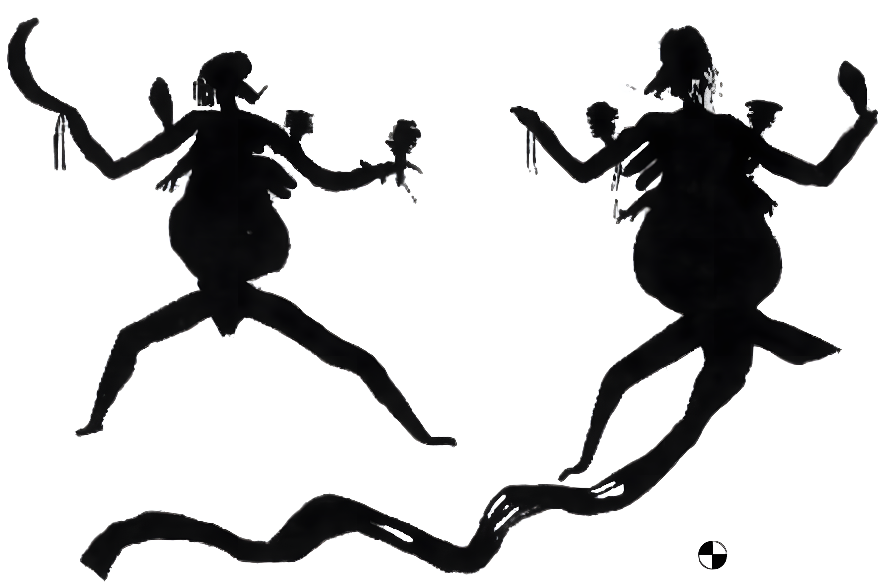 이러한 최면 모티프는 악기와 함께 나타나는 경우가 많았는데, 예를 들어 딸랑이 그림에는 수인, 곤두선 머리카락, 불룩한 배가 함께 그려져 있거나, 북은 춤추는 사람들과 함께 묘사된다.