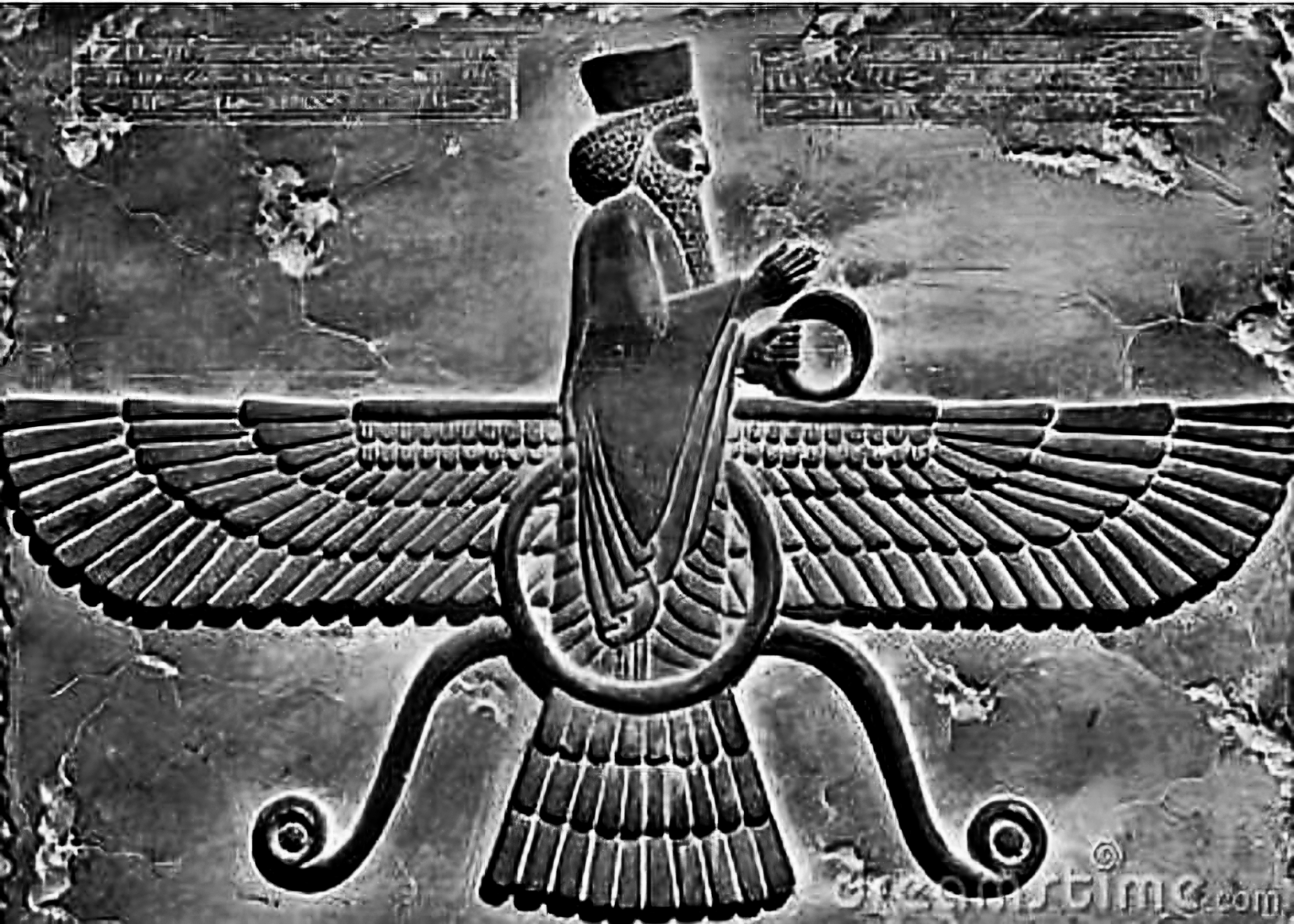 조로아스터교에서 신으로 받아들이는 아후라 마즈다 Ahura Mazda 는 ‘이성의 주인’로 상징되는 반면 에리만 Ehriman 은 악의 세력을 대변하며 선과 악의 투쟁은 이 지점에서 시작된다.