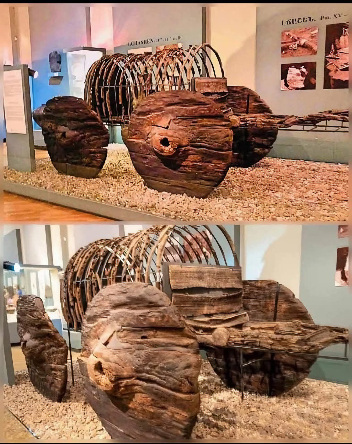 아르메니아 세반 호수 Lake Sevan 인근 차셴 Lchashen 마을이란 데서 발굴된 4000년 된 잘 보존된 마차 여러 대 wagons 중 하나라 한다.