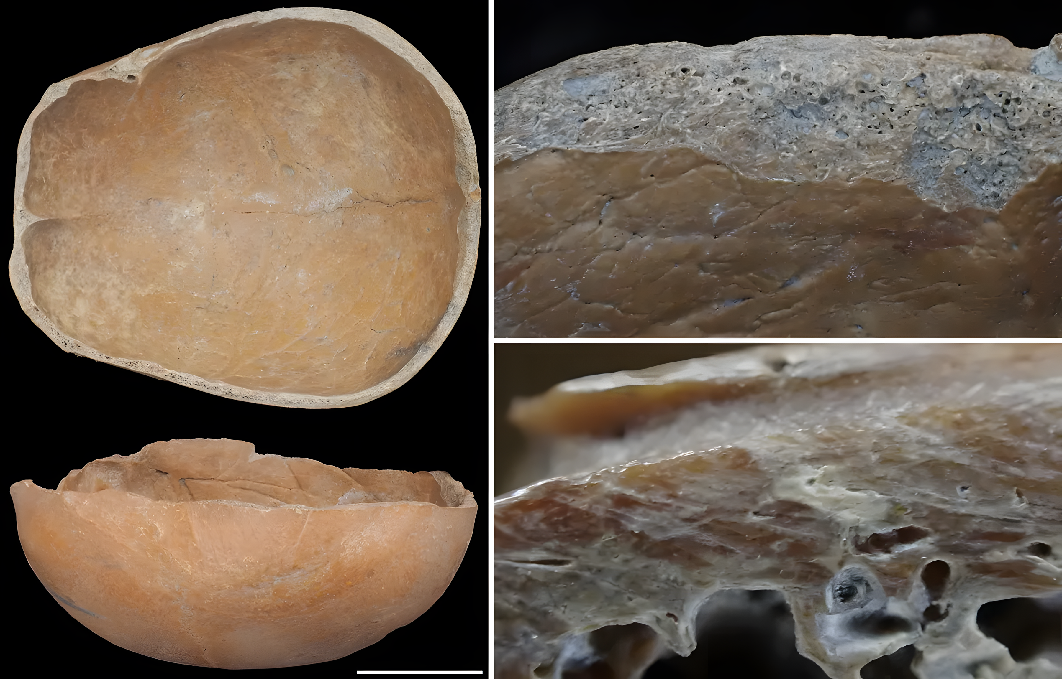 연구진은 수평으로 잘리거나 쪼개져 "두개골 컵"을 만든 성인 두개골 네 개와, 위아래로 쪼개져 해골 가면처럼 생긴 물체를 만든 또 다른 두개골 네 개를 발견했다.