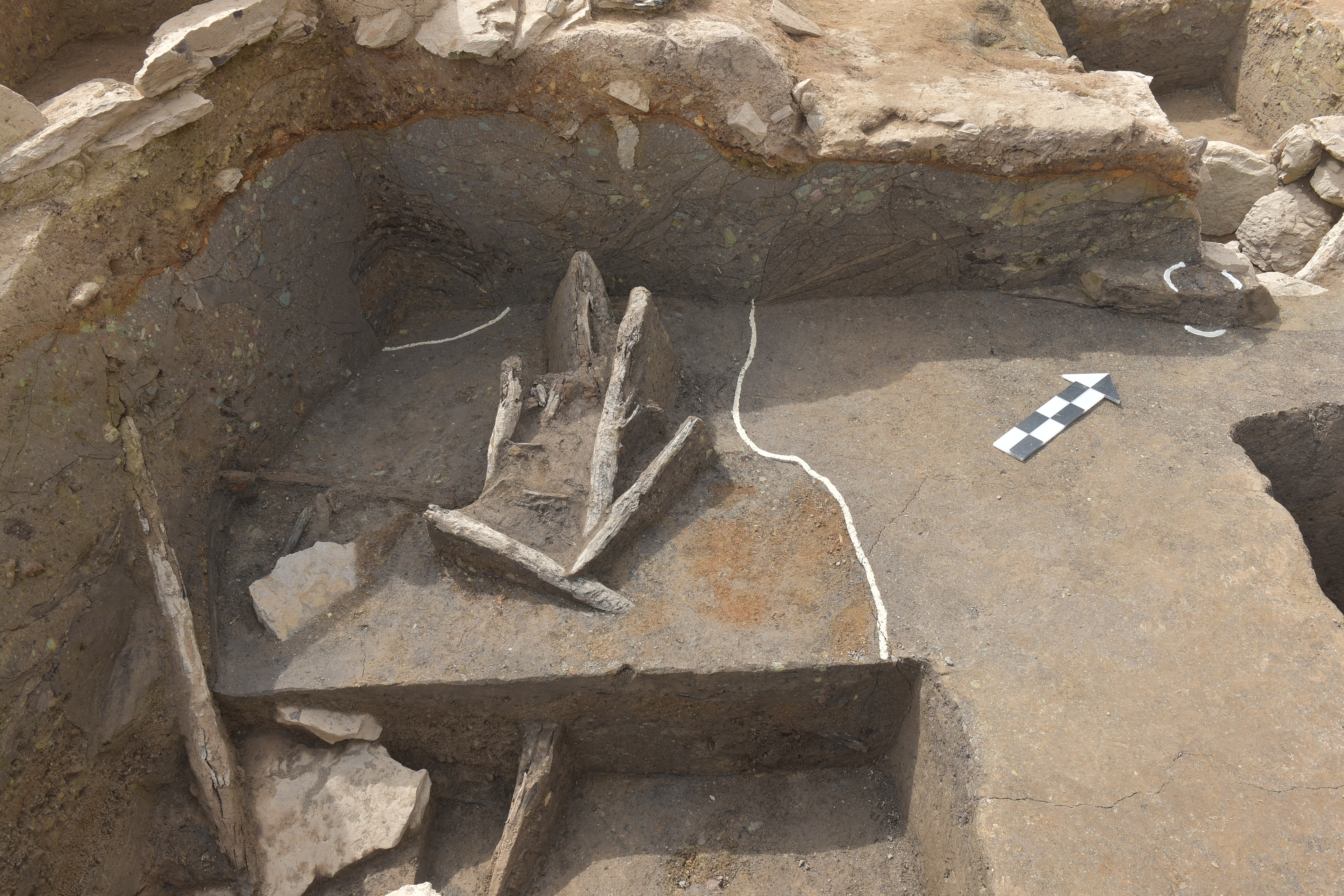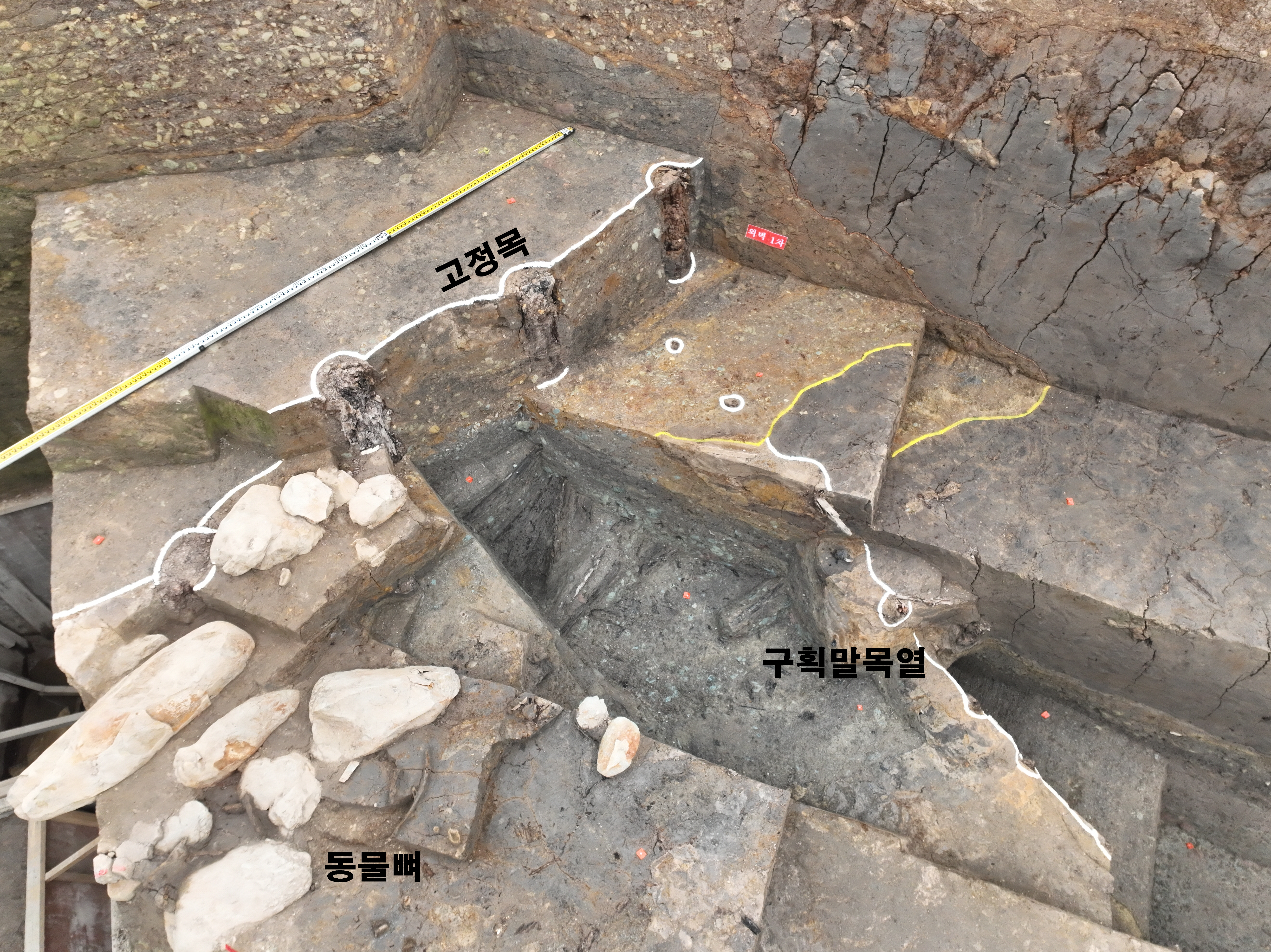 나아가 "성벽 외부에서는 말뼈와 땅의 경계를 구분하기 위해 일정한 간격으로 말뚝(말목)들을 박아 놓은 구획 말목열이 확인되었다"고 한다.