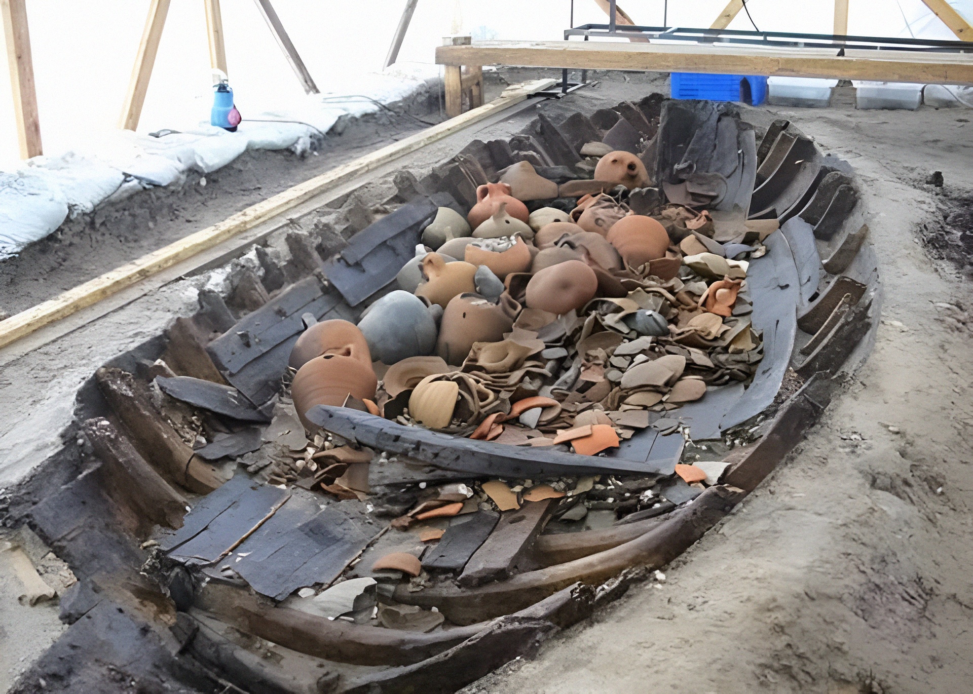 발견된 배들은 천 년 전 폭풍과 같은 쓰나미로 침몰한 것으로 본다.