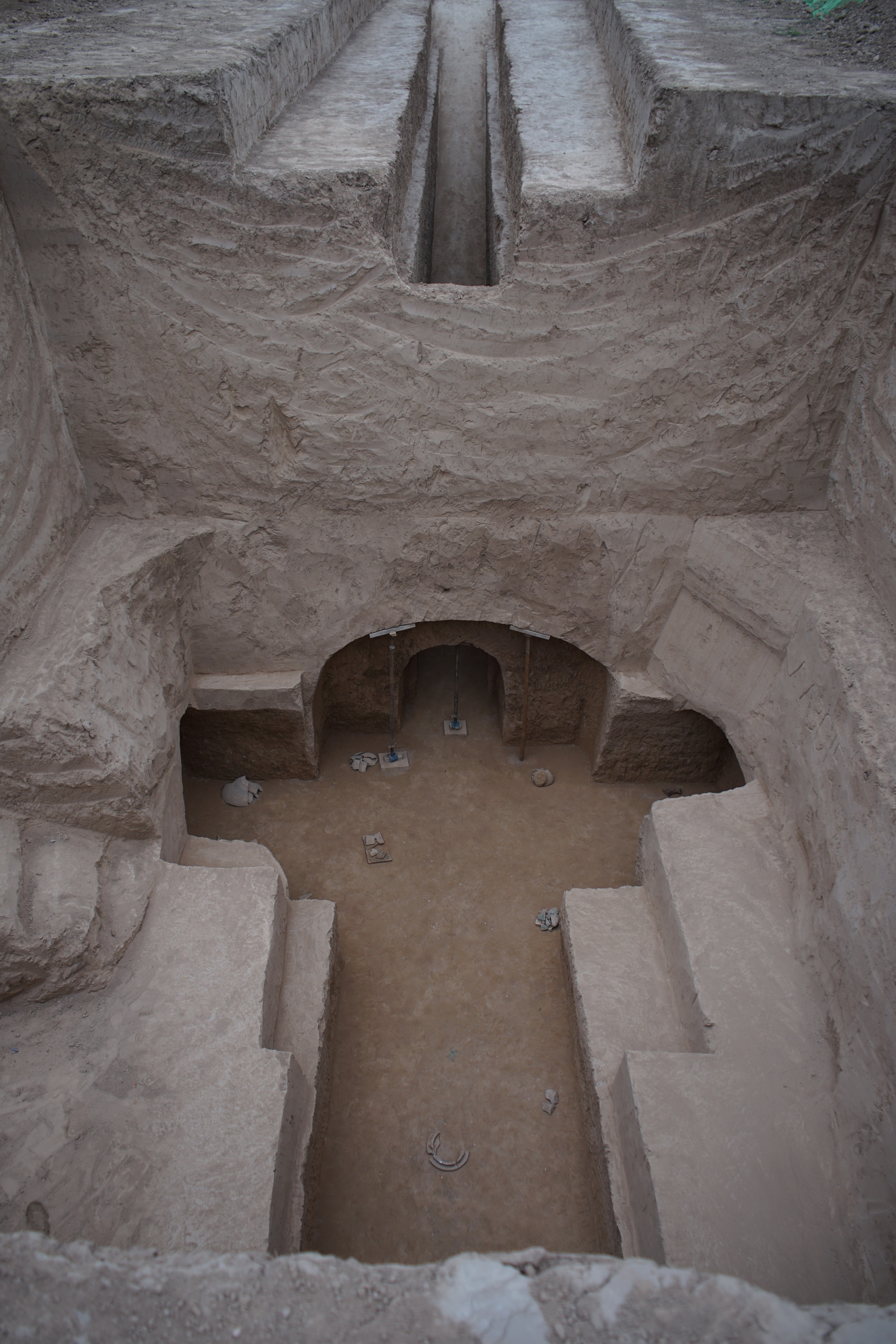 답: 2021년 5월, 섬서성고고연구원은 함양시 성임촌 남동쪽에서 동한 시대 가족묘를 발굴했다. 묘지에 있는 6개 무덤은 모양과 크기가 비슷했으며, 동쪽을 향하고 남북으로 나란히 배치되어 있었고, 각 무덤 사이 간격은 15~20미터였다. 모두 경사 통로형 석실묘[斜坡墓道洞室墓]였다.