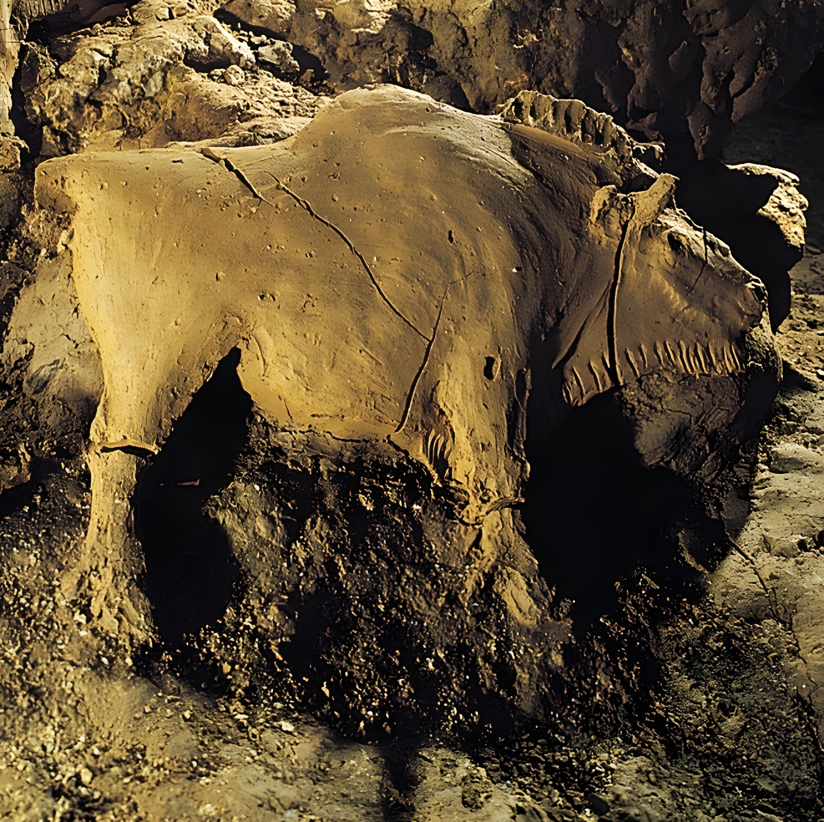 들소는 세밀한 갈기와 턱수염이 도구로 조각한 듯한 느낌을 주고, 턱에는 조각가 손톱의 섬세한 흔적이 남아있다.