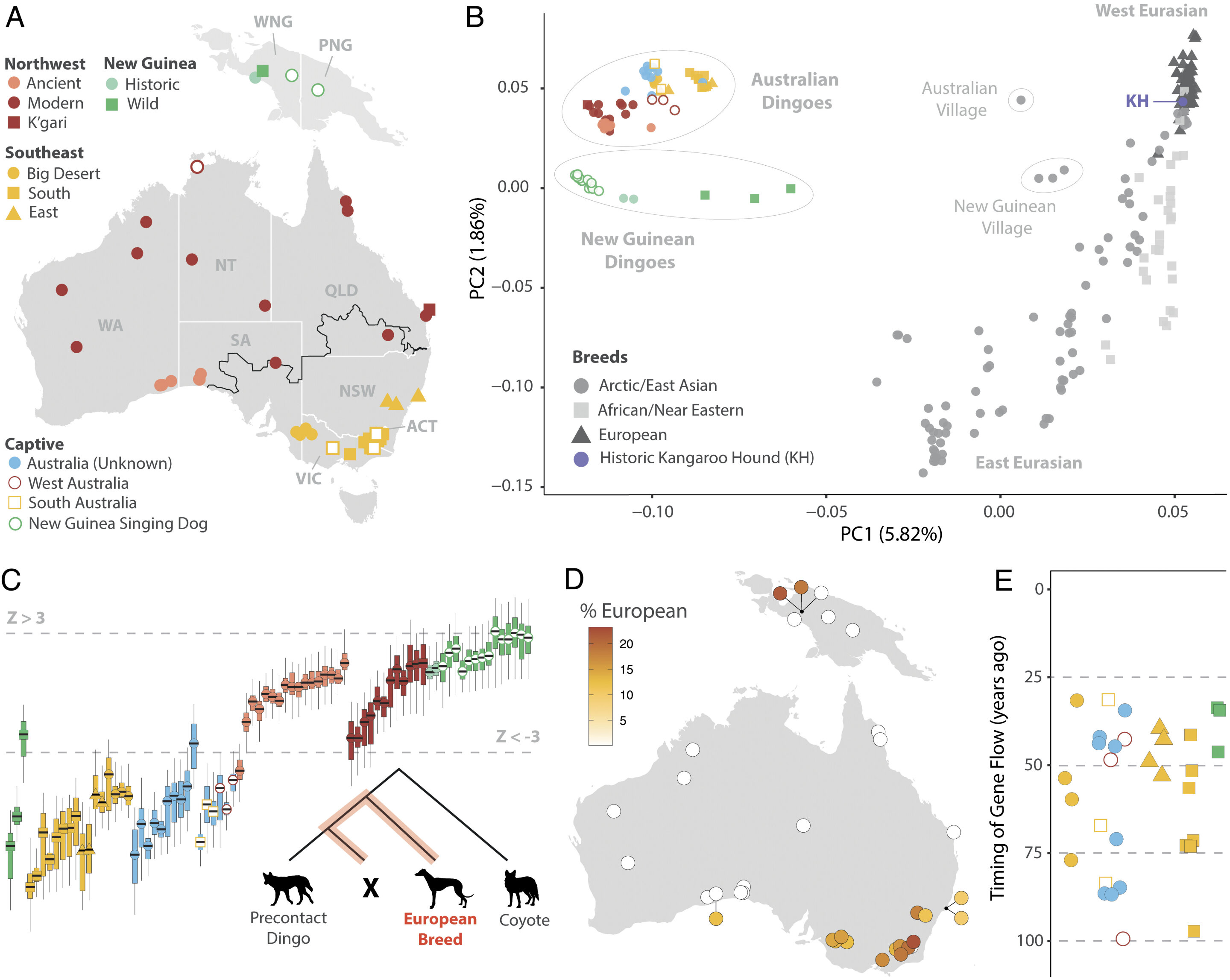 또한 우리는 현대 딩고의 유전체를 이러한 역사적 기준선과 비교하여 현대 개에서 딩고로의 유전자 흐름의 시기와 범위를 밝혀냈다.