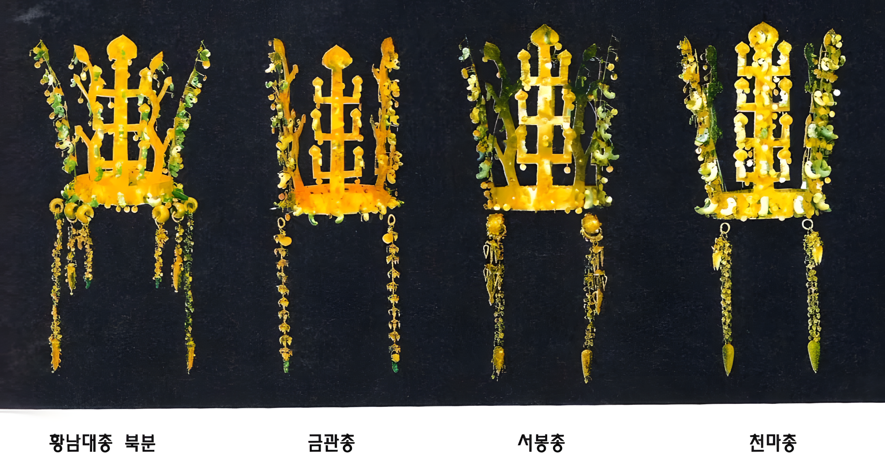 저 금관은 크게 구분하면 테와 세움장식, 그리고 그에 덕지덕지한 각종 장식으로 삼분하겠거니와
