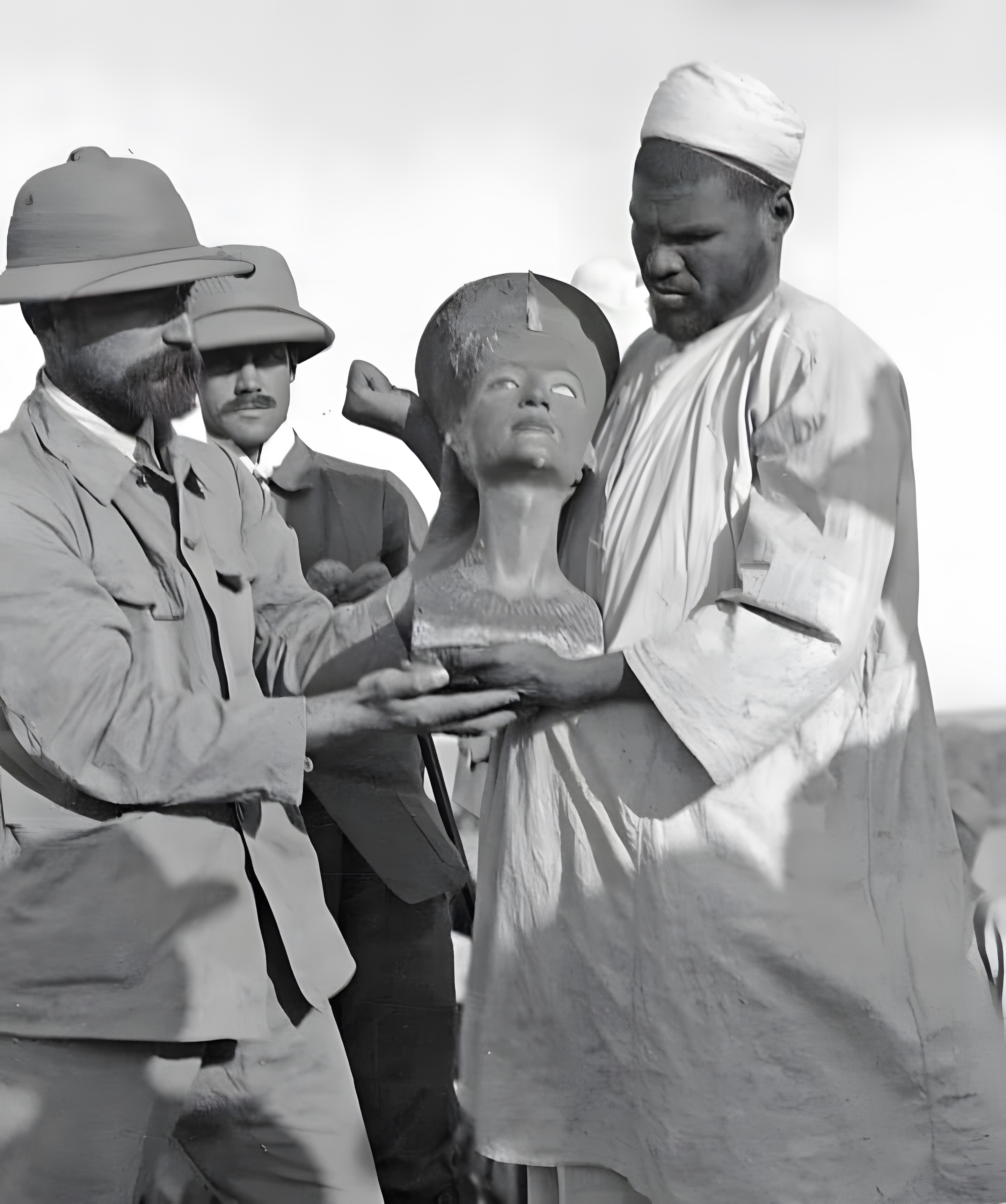 1912년 독일 조사단이 그 유명한 네페르티티Nefertiti 흉상을 발견해 꺼내는 모습을 포착한 사진이다.