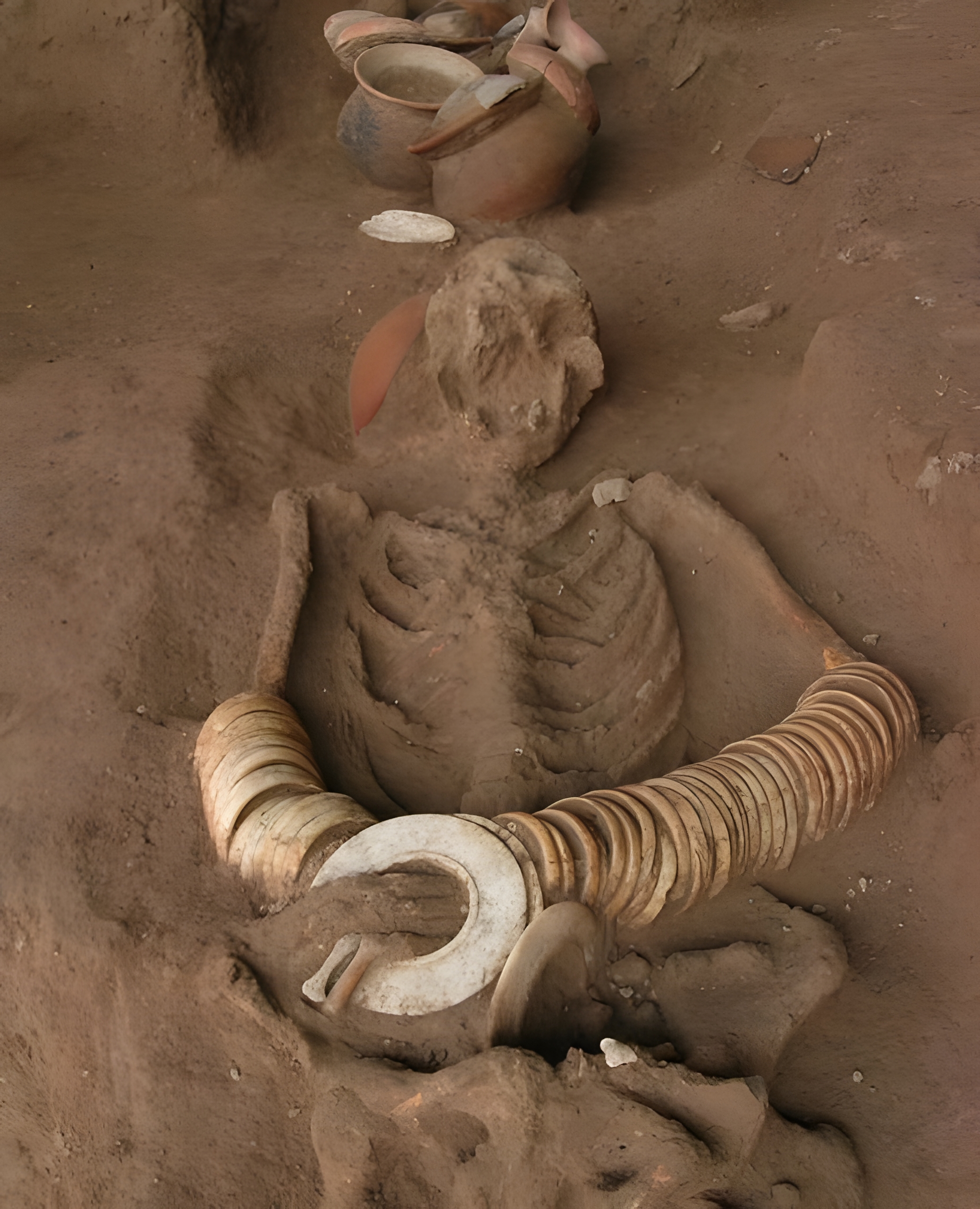 이곳은 엄청나게 많은 조개껍질과 대리석 팔찌로 장식한 한 남자 무덤으로 드러났다.