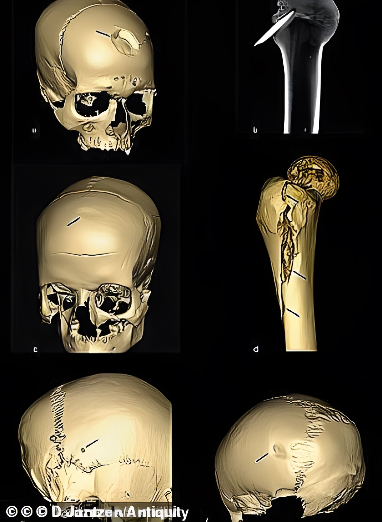 돌 화살촉이 뼈 한쪽 끝에 단단히 박힌 상태였기에 고고학도들은 더 많은 뼈, 부서진 두개골, 야구 방망이를 닮은 73cm 길이 곤봉을 발굴할 작은 시굴을 착수하게 된다.