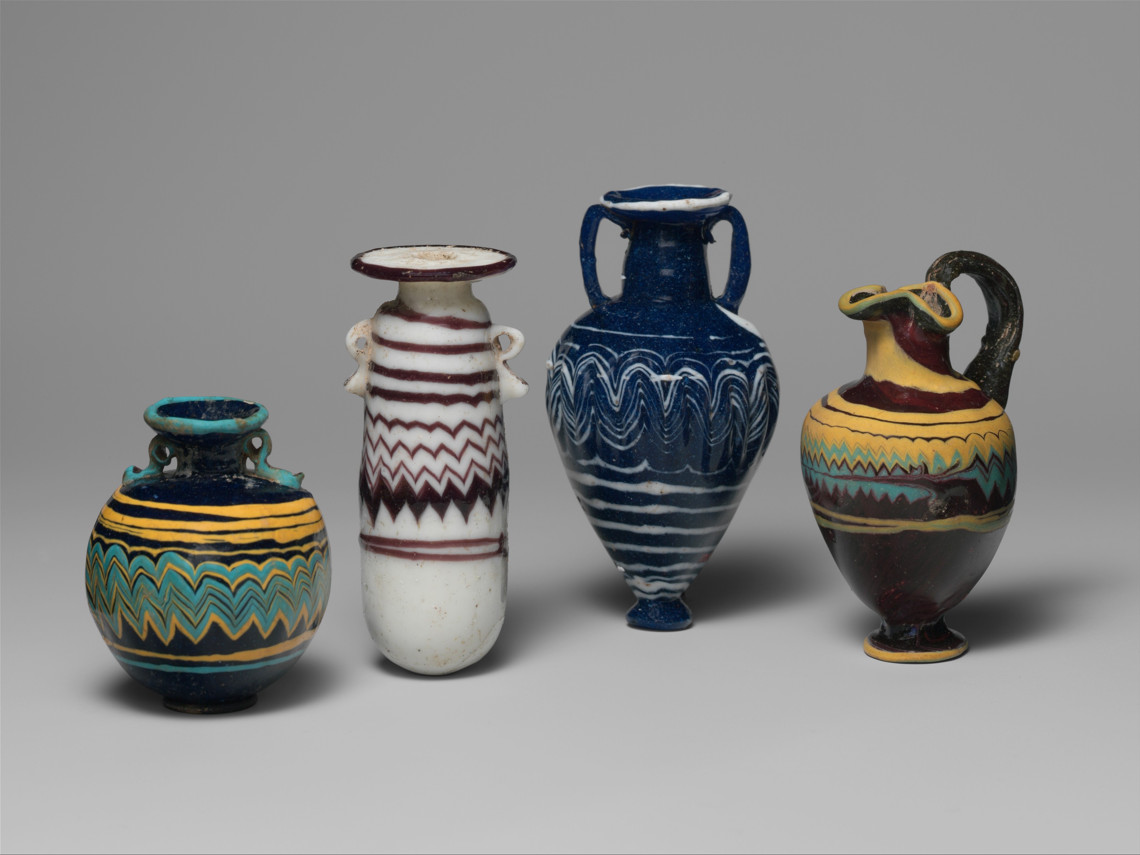 미국 메트로폴리탄박물관(Met) 소장 기원전 6~5세기 고대 그리스 유리 향수병들이다. 훗날 본격화하는 로만글라스와는 확연한 차이가 난다.