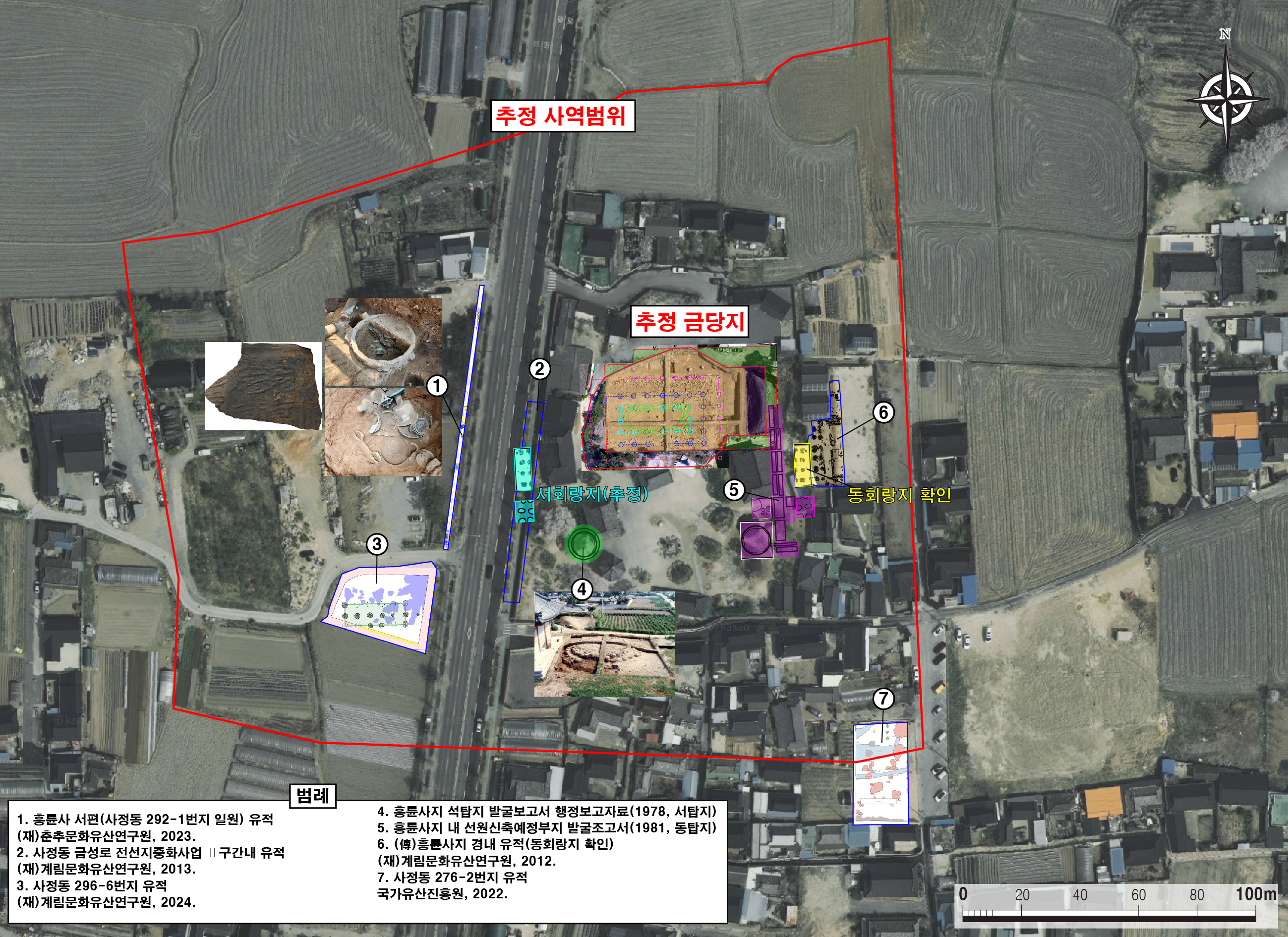 조사지점은 경상북도 경주시 사정동 285-6번지 일대, 딱 보면 지금의 흥륜사 경역을 치고 들어가서 마당을 팠다.