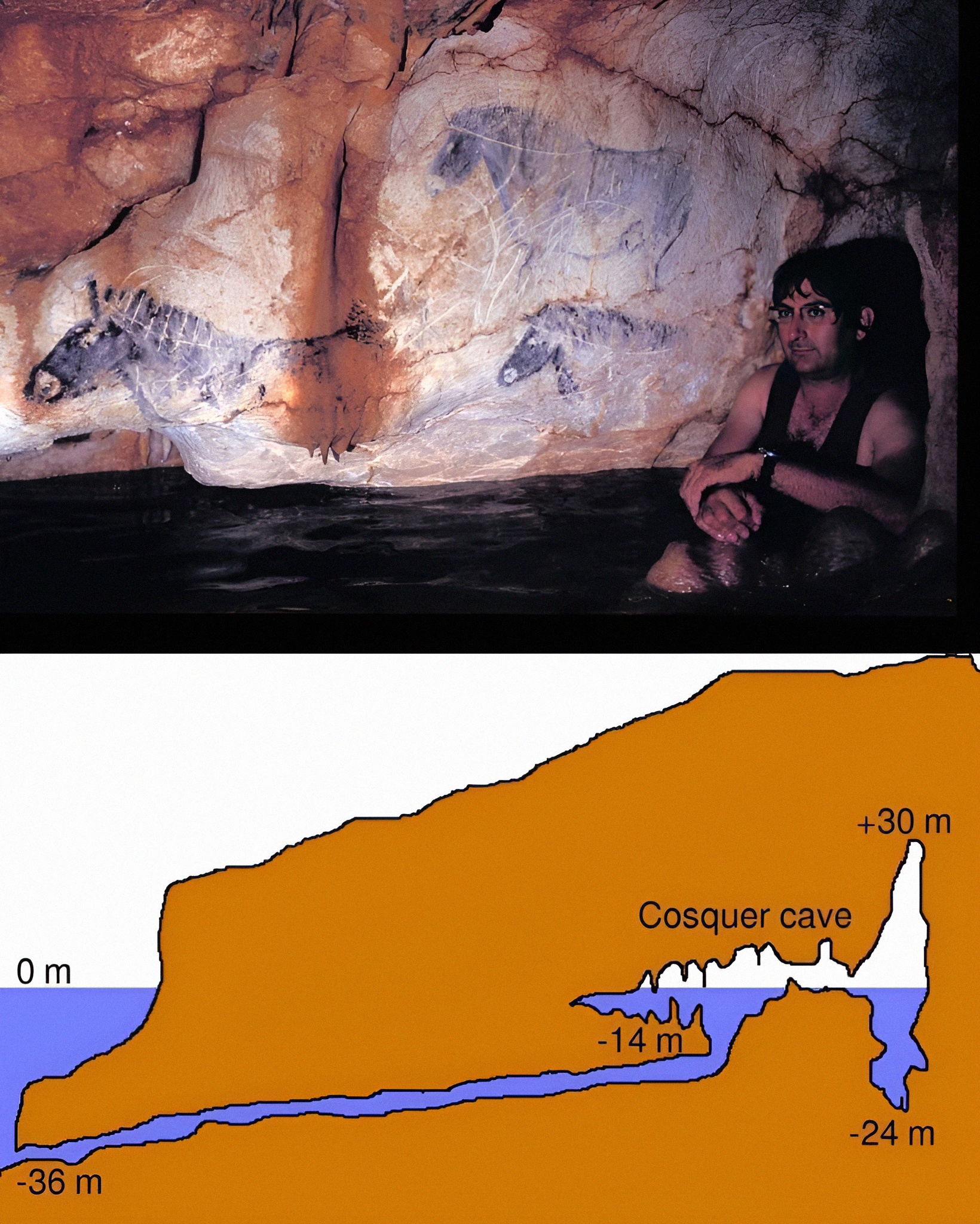 1985년 다이버 앙리 코스케 Henri Cosquer가 발견한 이 동굴은 마지막 빙하기 last Ice Age 이래 지속적인 해수면 상승으로 현재는 전체로 보면 절반이 바닷물에 잠겼다는 점에서 유별난 특징이 있다.