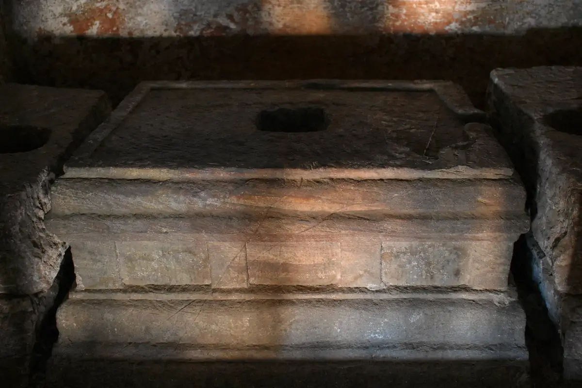 고고학자들은 대성당 지하 중앙 앱스에서 흰색 석관을 발견했다.