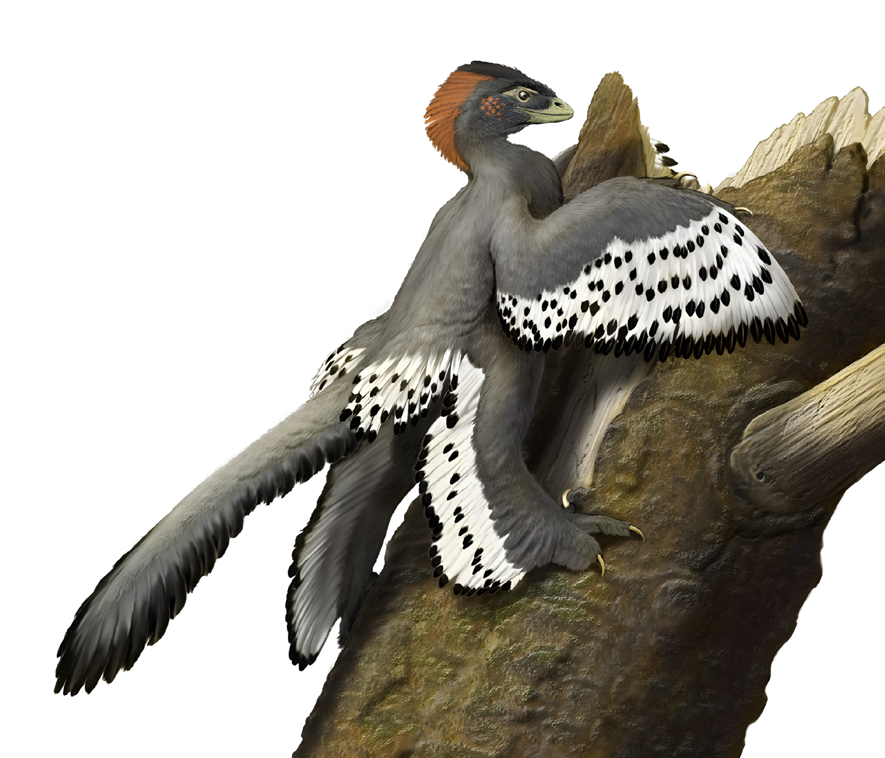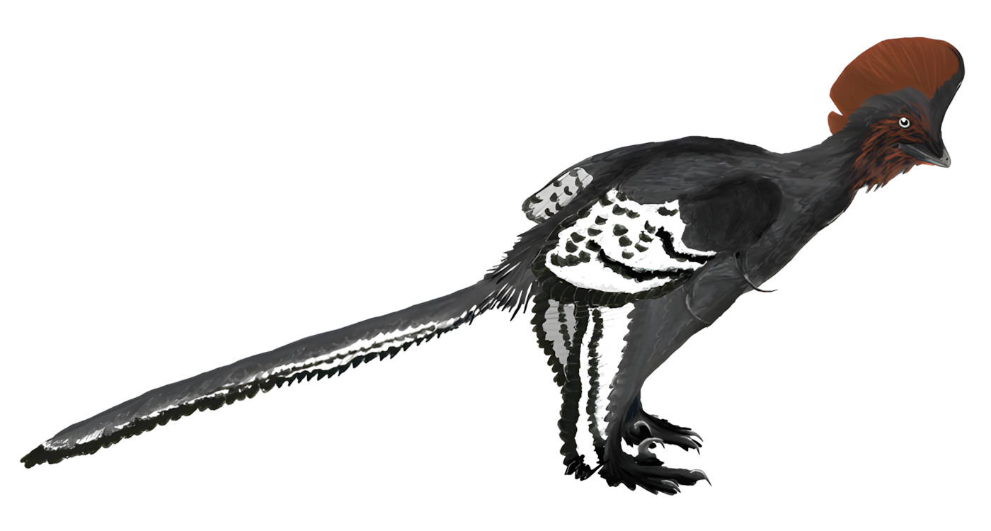 중국에서 발견된 공룡 화석의 보존된 깃털 색깔 덕분에 연구진은 날개 구조를 파악할 수 있었는데, 날개 가장자리에는 검은 반점이 연속적으로 이어져 있었다.