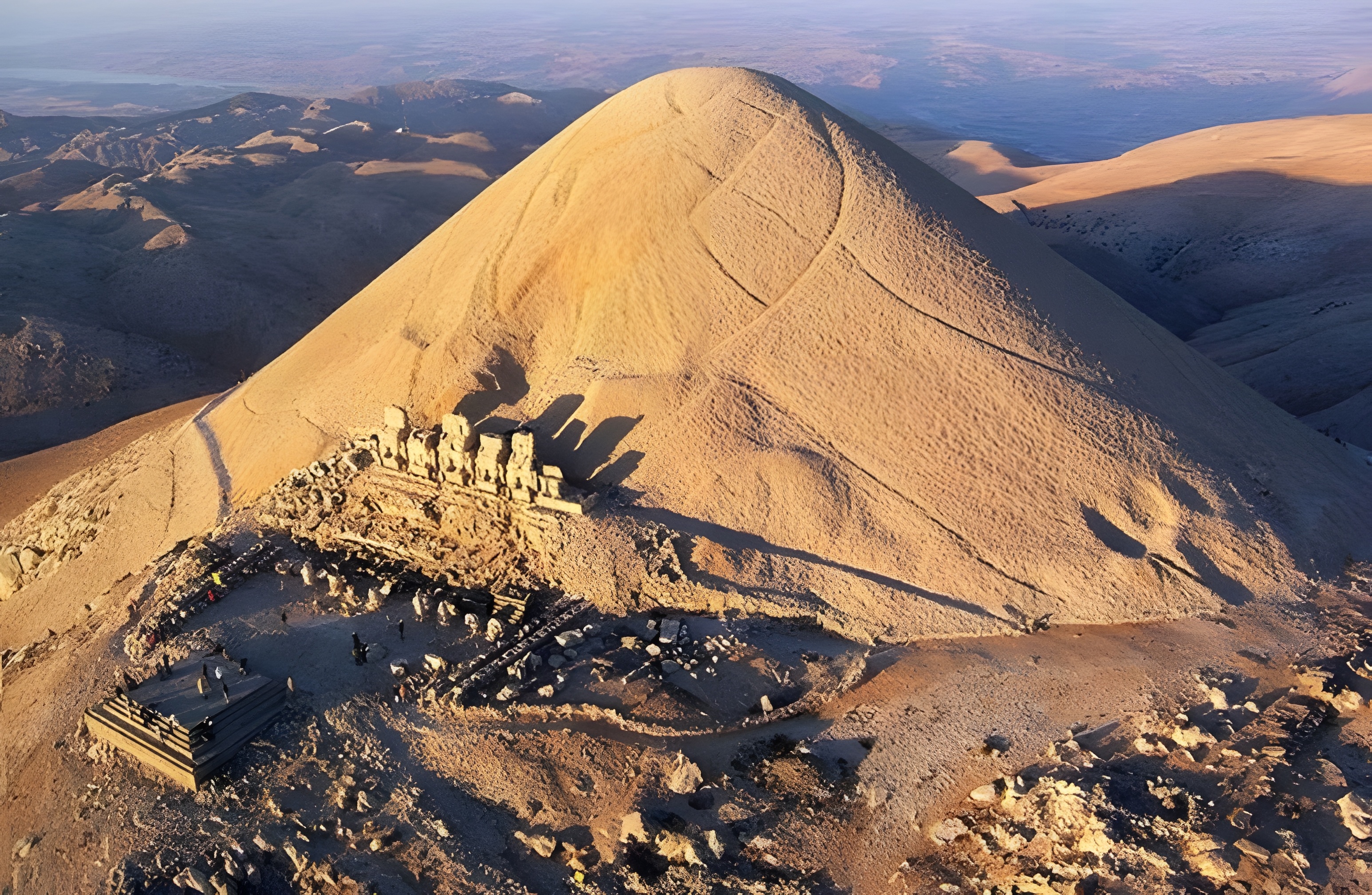 튀르키예 동부 아나톨리아 넴루트 Nemrut 산을 항공으로 통해 바라본 장면 중 하나다.