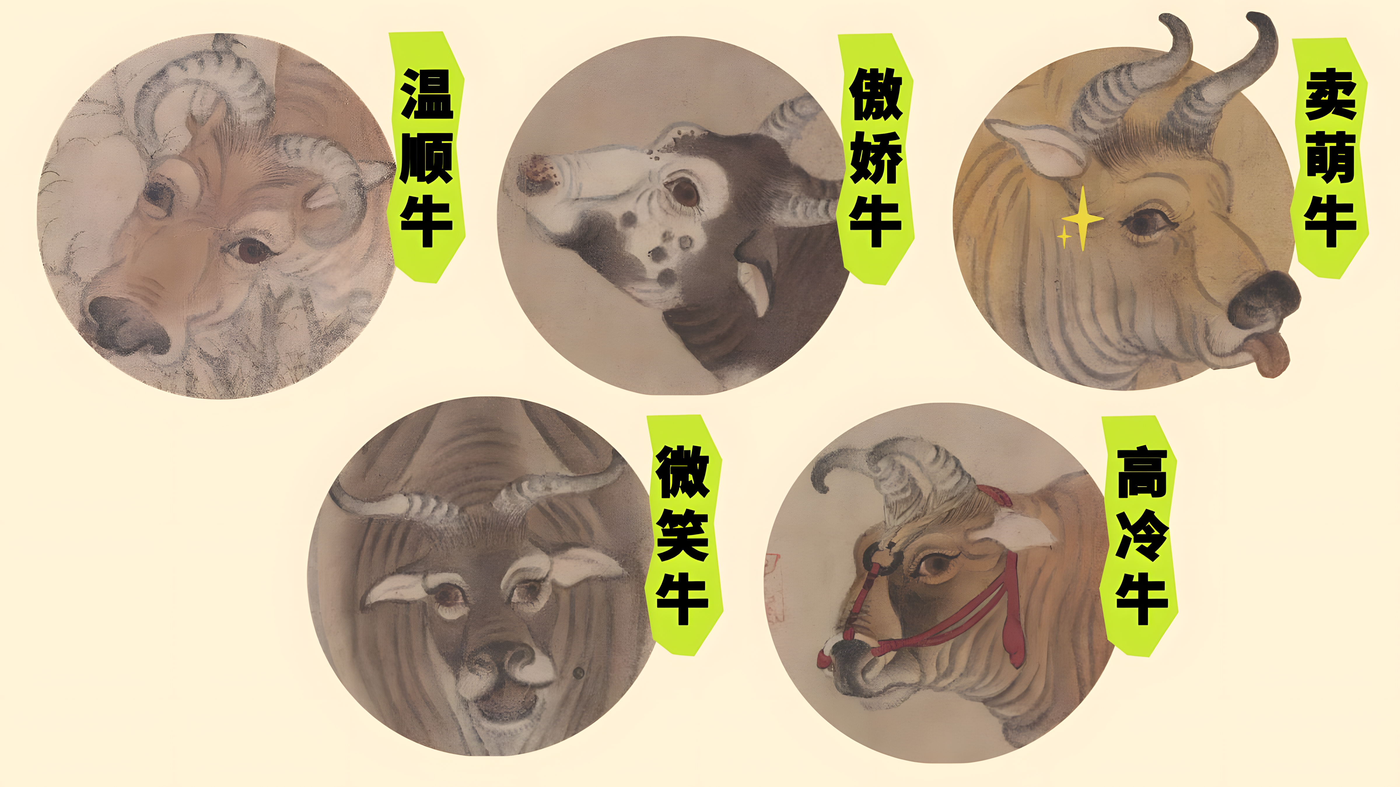 The use of cattle in paintings is a traditional subject in ancient Chinese painting, reflecting the agricultural-based ideology of this ancient nation. During his tenure as prime minister, Han Huang emphasized agricultural development, and this painting may have encouraged farming. "Five Oxen" is the only surviving copy of his work and one of the few authentic Tang Dynasty paper and silk paintings. Therefore, it has garnered widespread attention for both its artistic achievement and historical value.