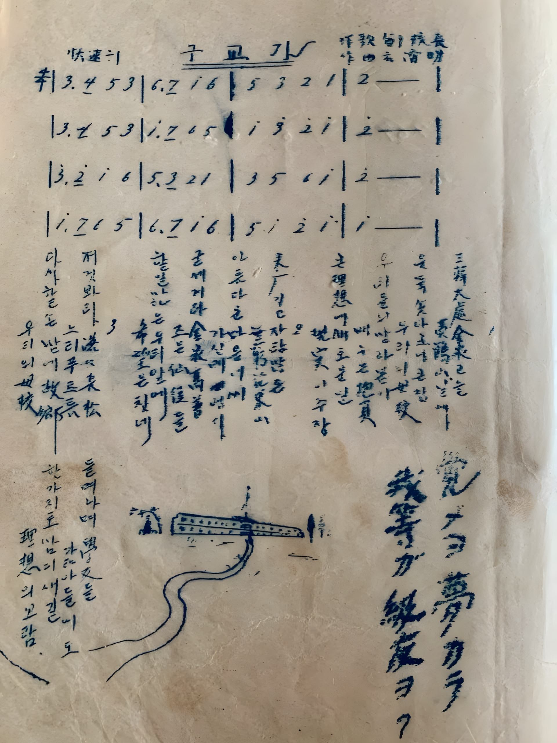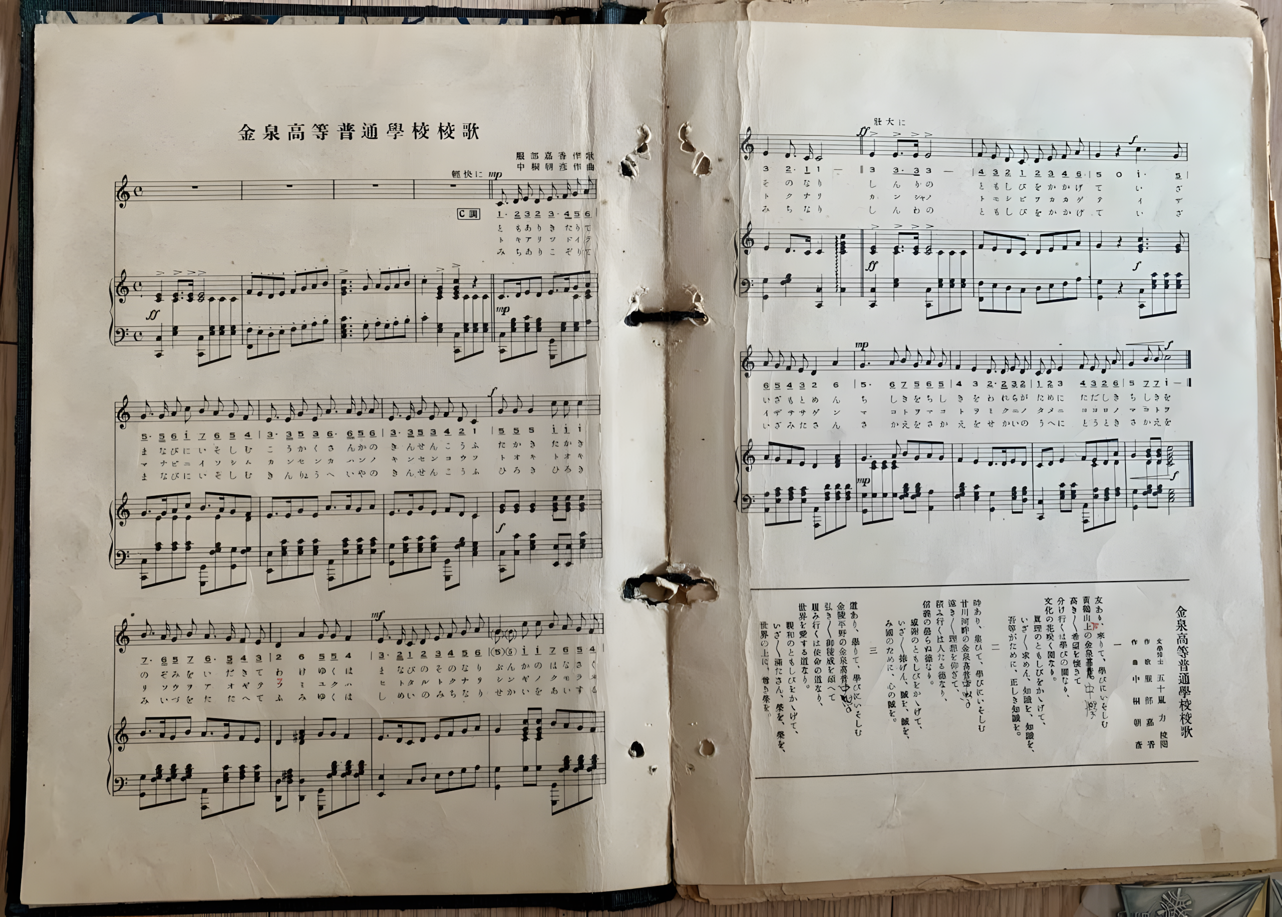 간만에 모교 김천고등학교 소식이라, 선배님이신 김창겸 형 사발통신인데 이르기를 일제강점기 김천고보에서 사용한 음악 교재가 발견되었다고.