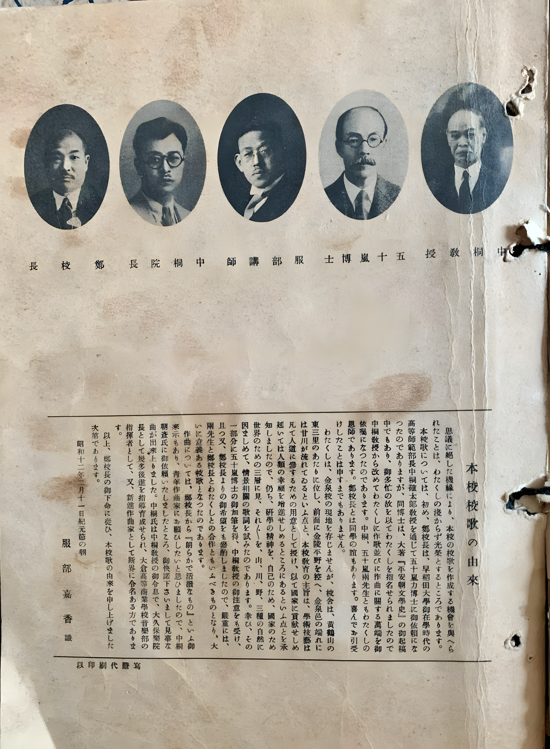 교재 안에는 처음 보는 일본어로 된 교가와 (구)교가라 하여 1932년 1월에 정열모 작사하고 현재명 작곡한 우리말로 된 교가와 응원가 등이 수록되어 있어, 음악사와 교육사 연구에 중요한 자료가 될 것으로 보인다고.