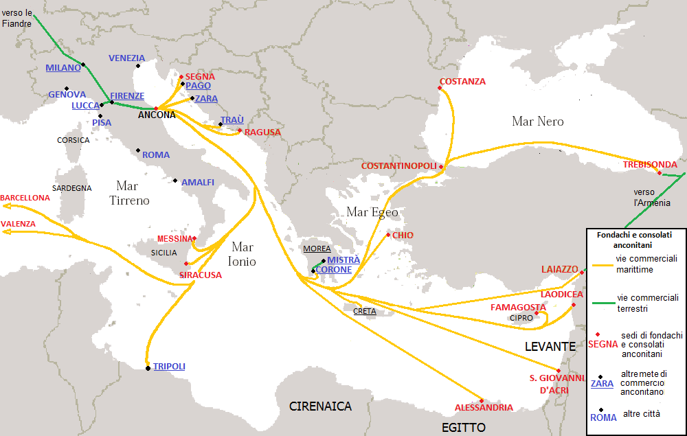 개중 아드리아해변 항구 도시들인 아르미니움 Arminium과 안코나 Ancona, 그리고 카스트룸 트루엔티늄 Castrum Truentinium 을 연결하는 도로가 있었다.